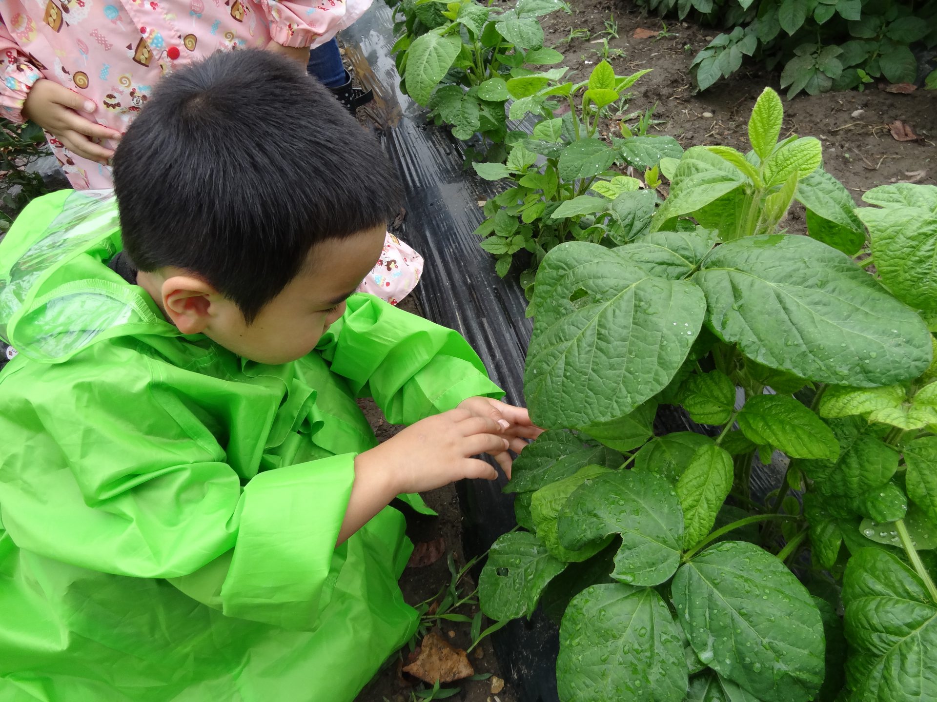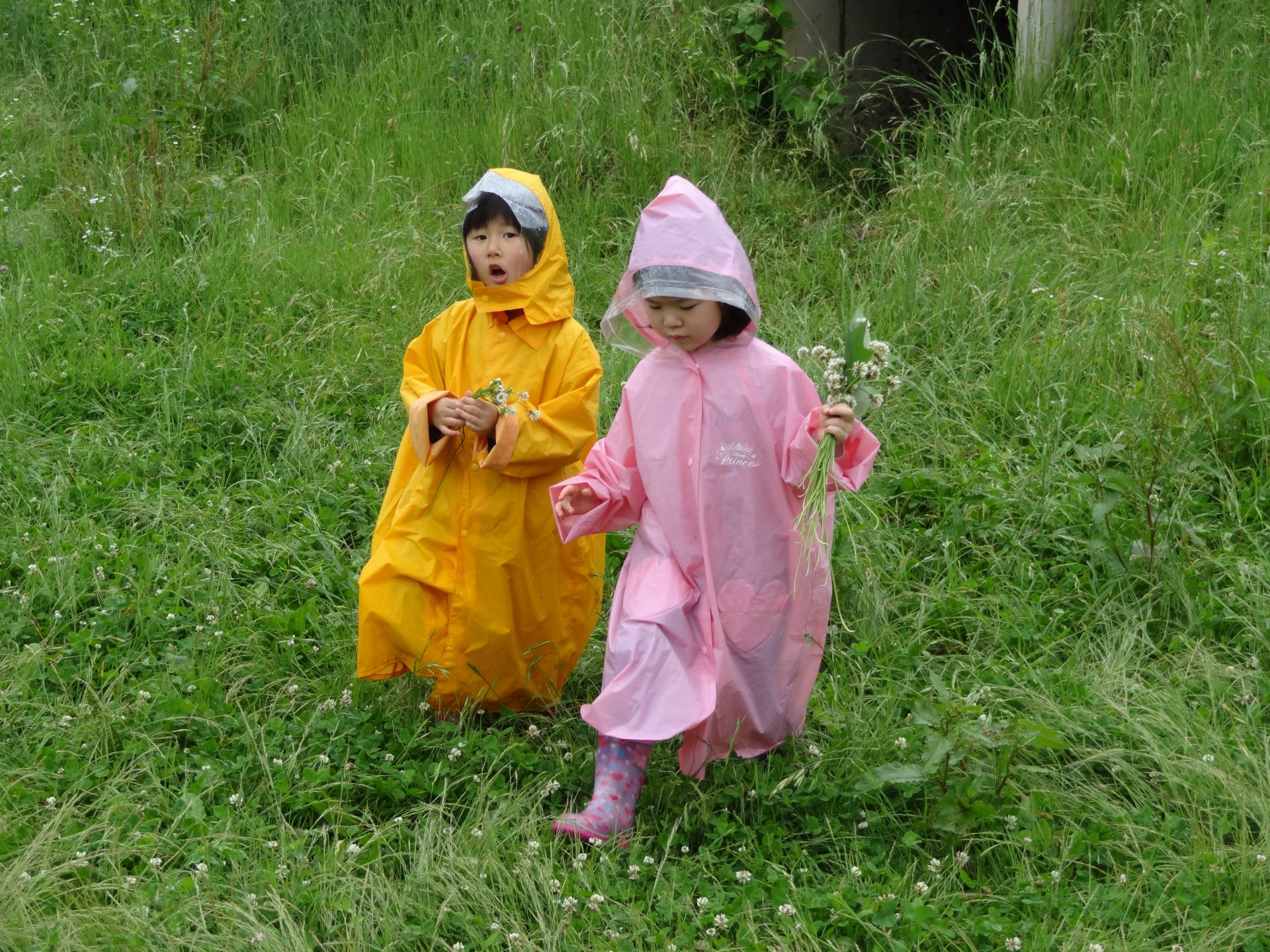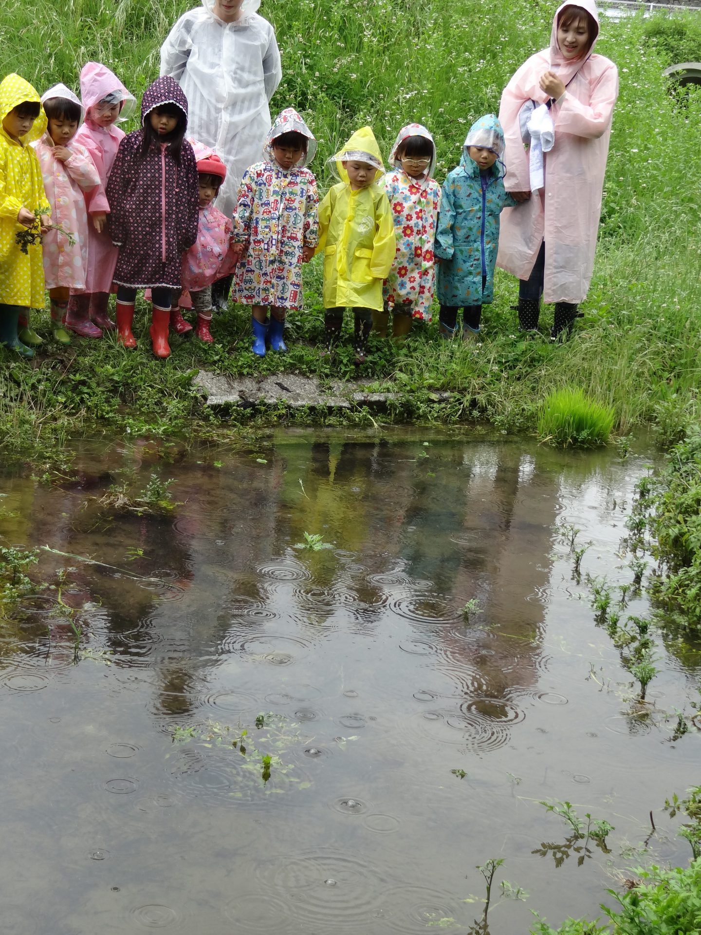 長ぐつをはいて、カッパを着て準備バッチリです