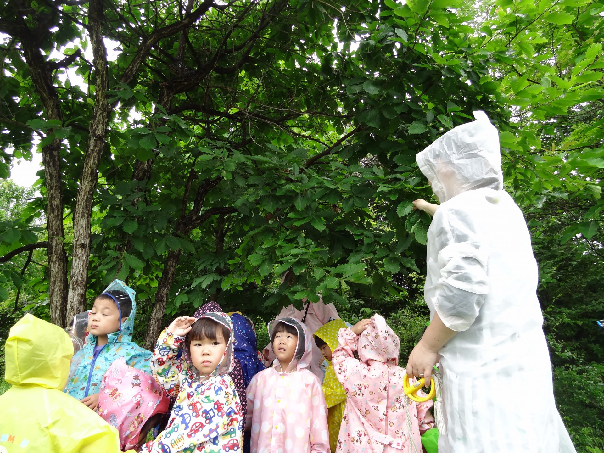 大粒の雨が降ってきて、みんな大興奮!