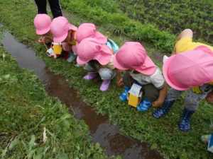 「あっ、カエル」「えっ、どこ?」「あっ、こっちにもいた!」ゆったりずっと見ていました。