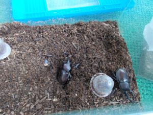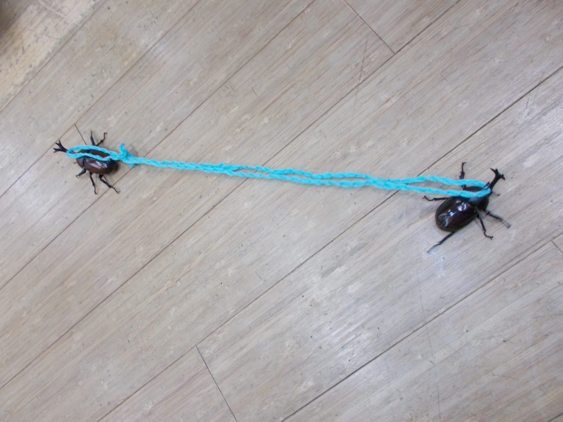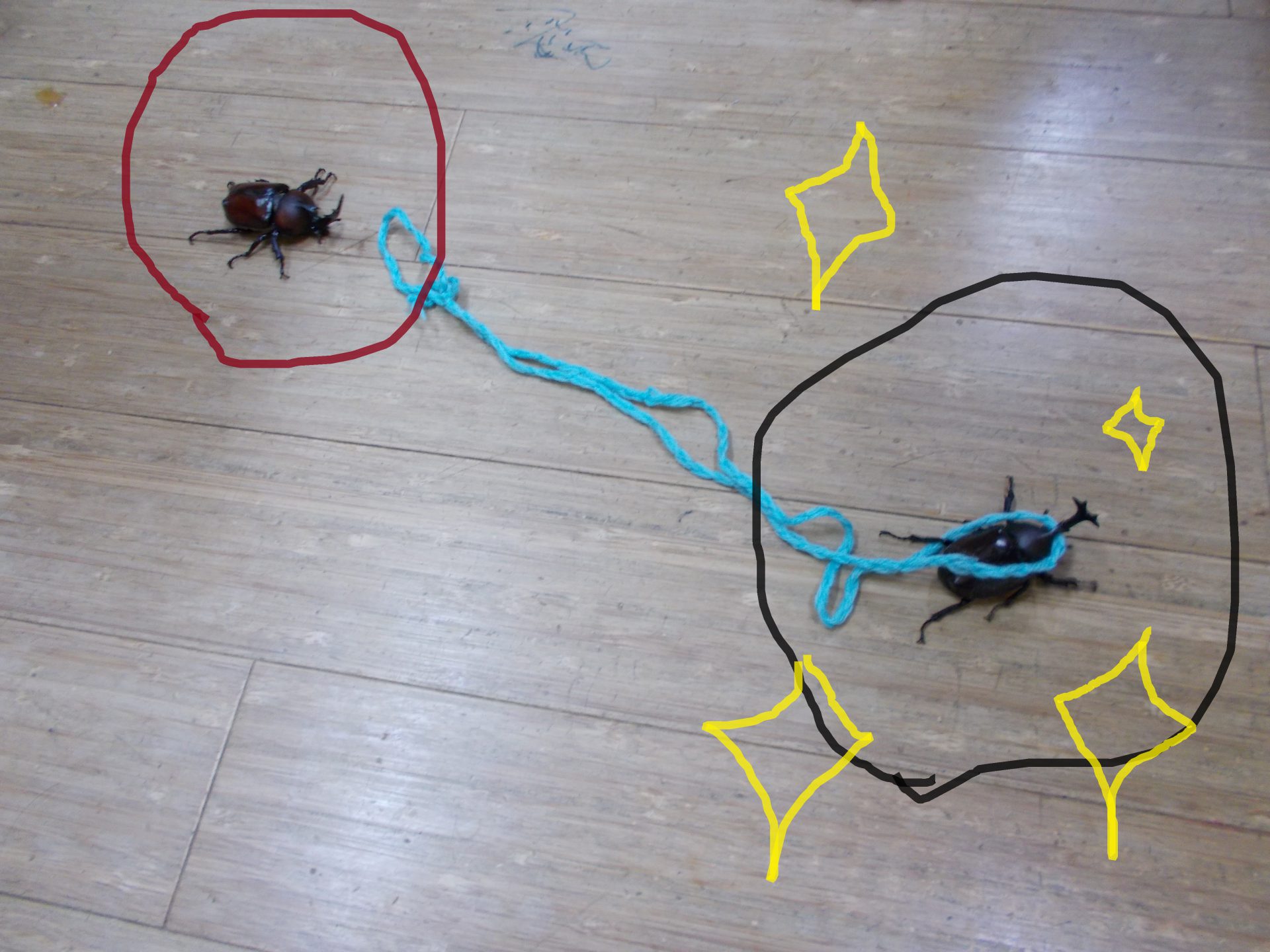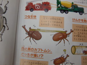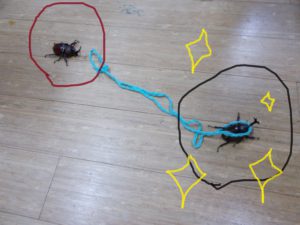 子どもたちの中では体が大きい茶色のカブトムシが勝つのではないかと予想していたようですが、勝ったのは体が小さい黒のカブトムシでした。