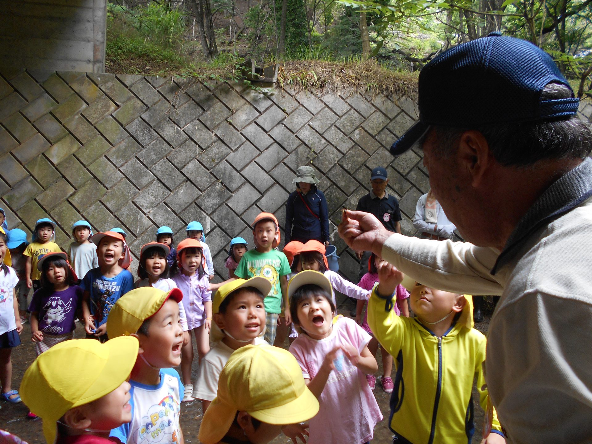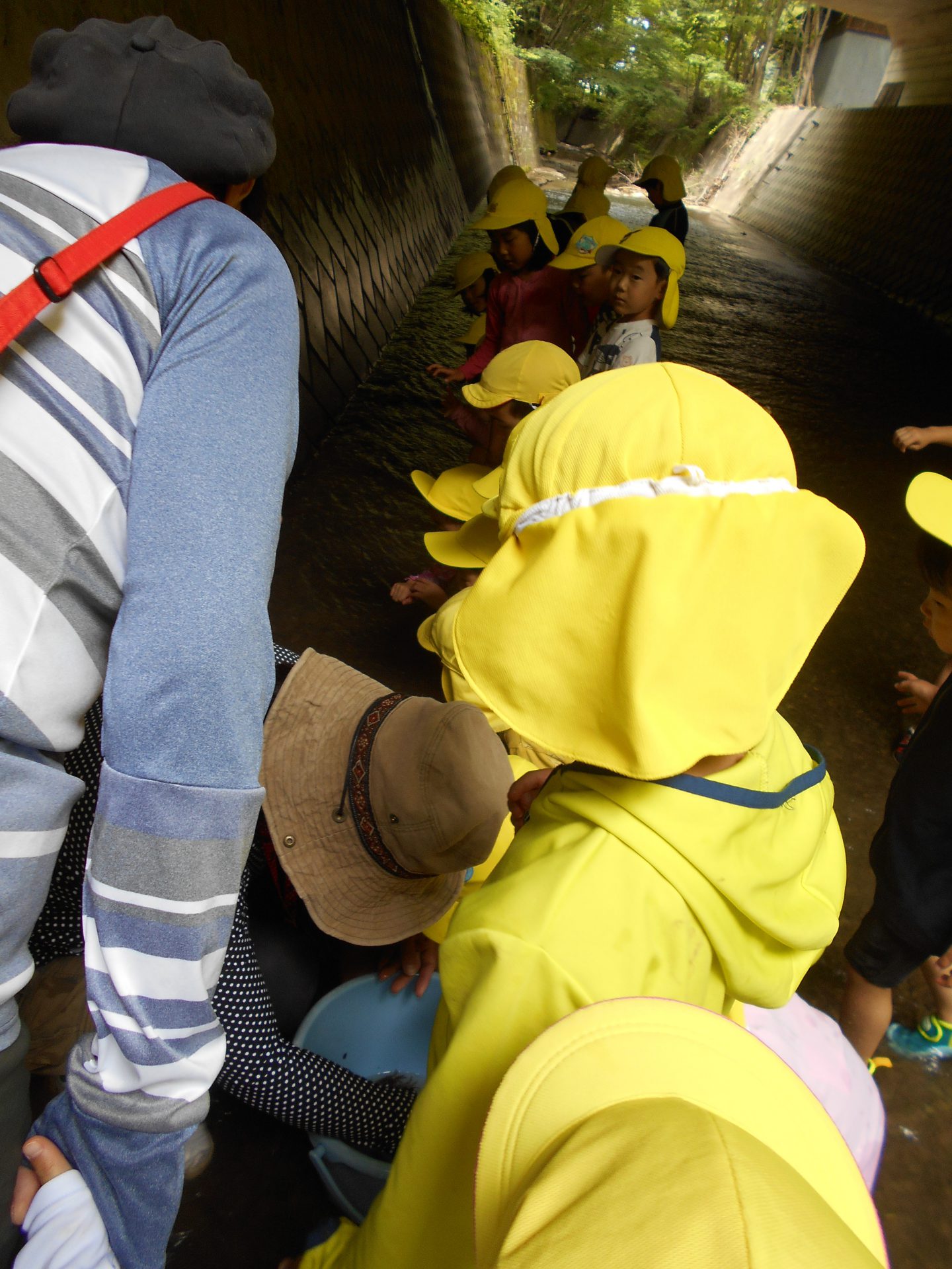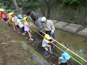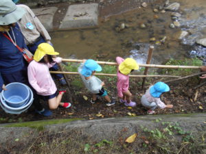 小さいあかちゃんガニは、大きくなるように沢へ帰します。「大きくなるんだよ。」年長さんが声をかけお別れします。小さい命も大切にする気持ちが育っています。