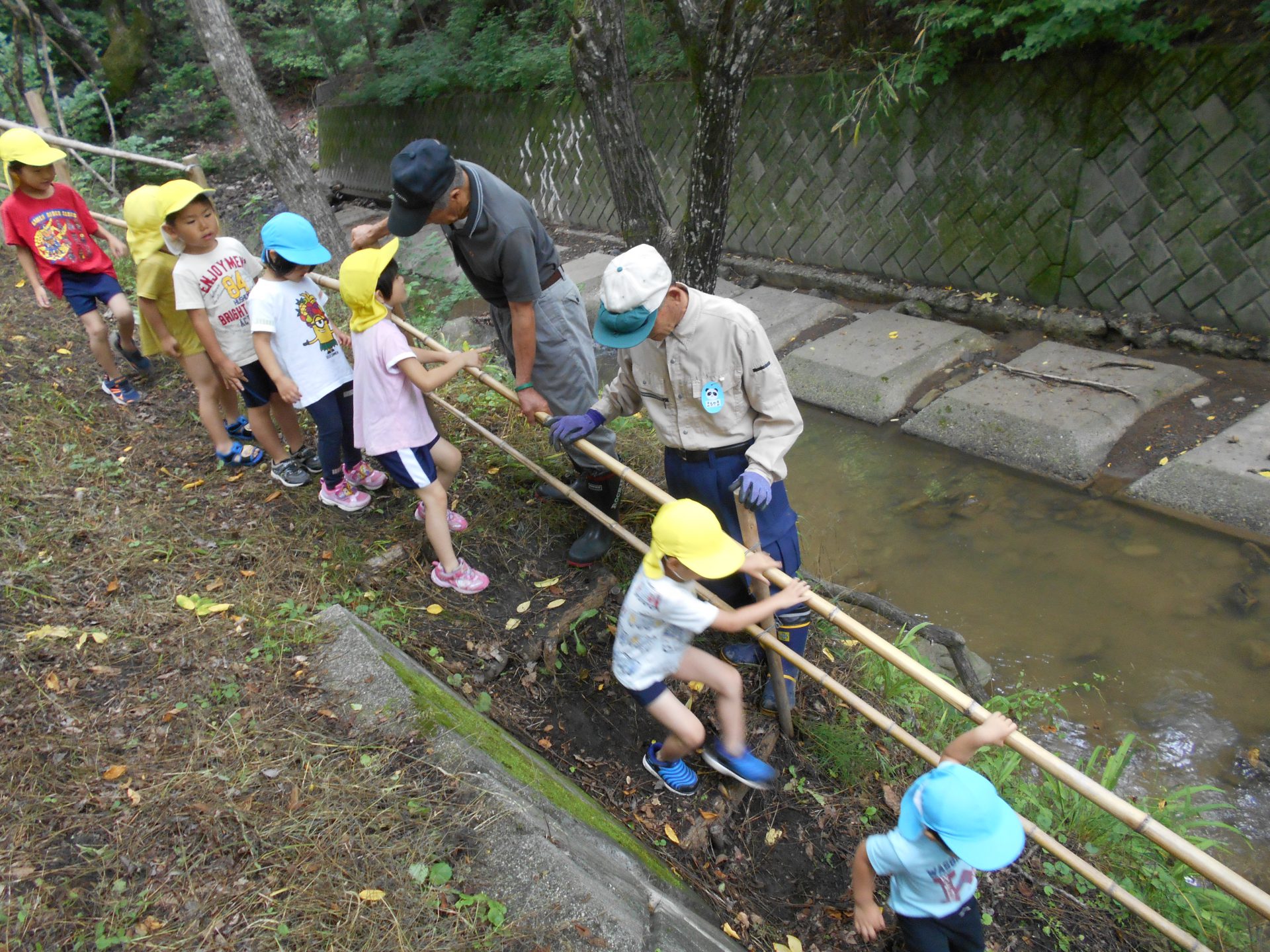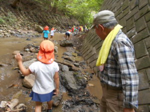 万年青会のみなさんと一緒に沢ガニ捕りに出発です!!ドキドキの子ども達、沢ガニ捕れるかな。