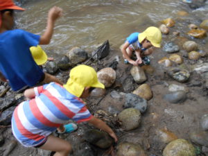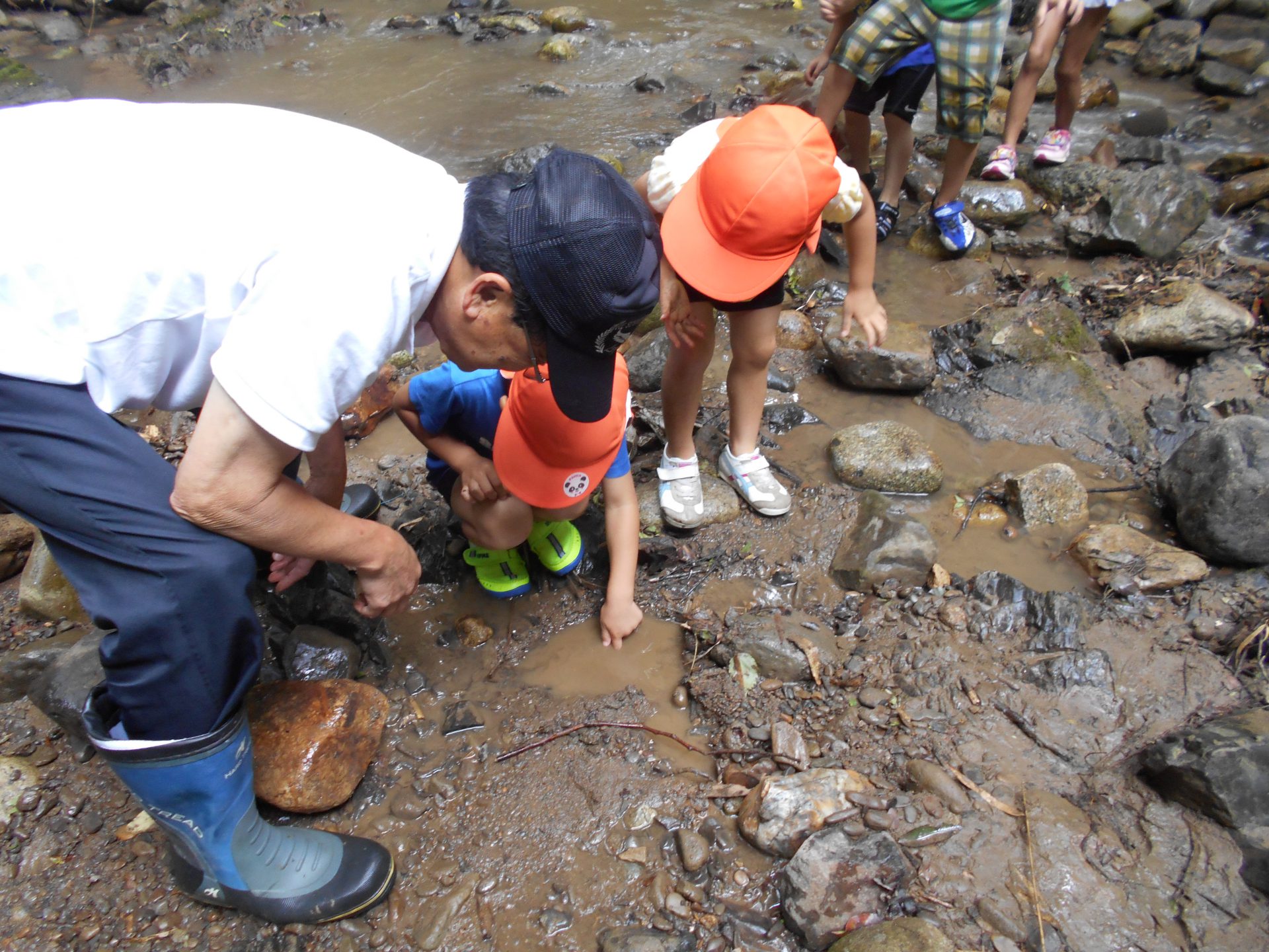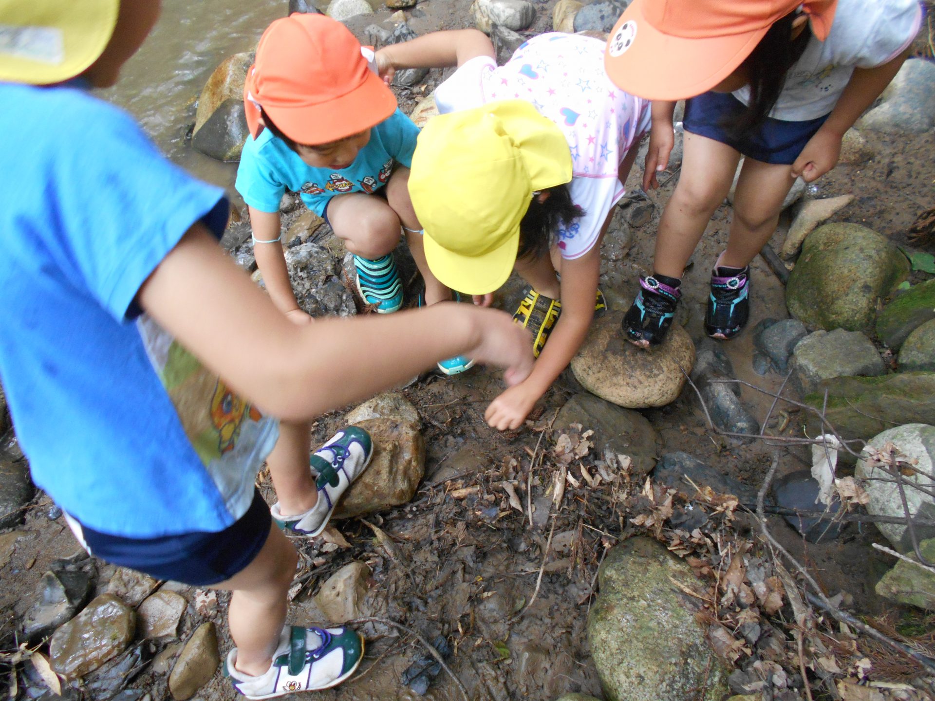 沢ガニ捕りが楽しくなり自ら探す子ども達、発見し捕まえられた時の嬉しさや満足感が次への活動へ繋がって行きます。主体的に活動できる子ども達です。