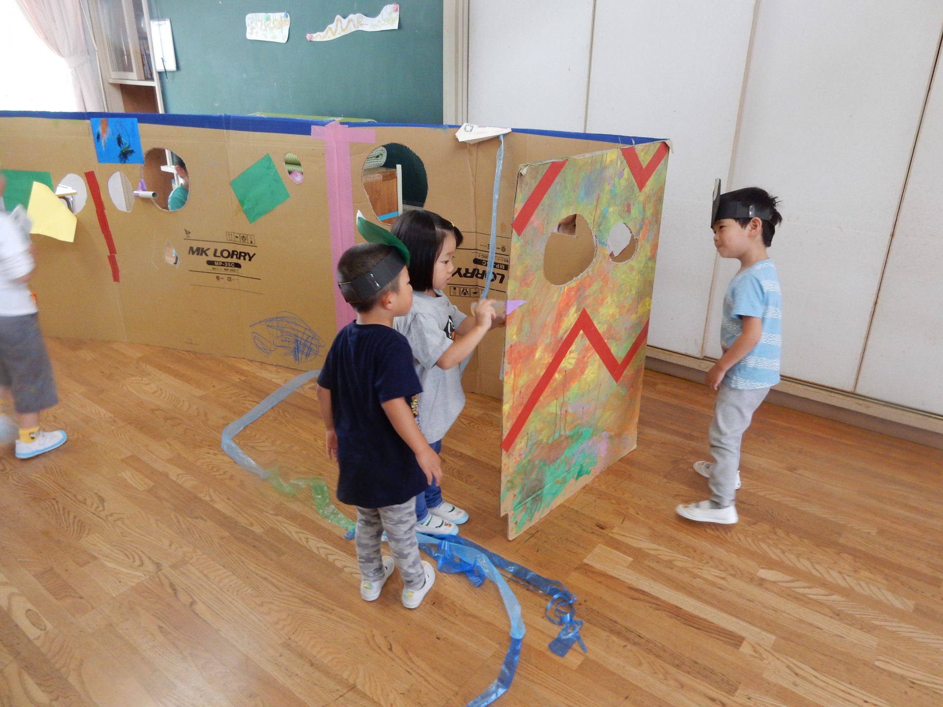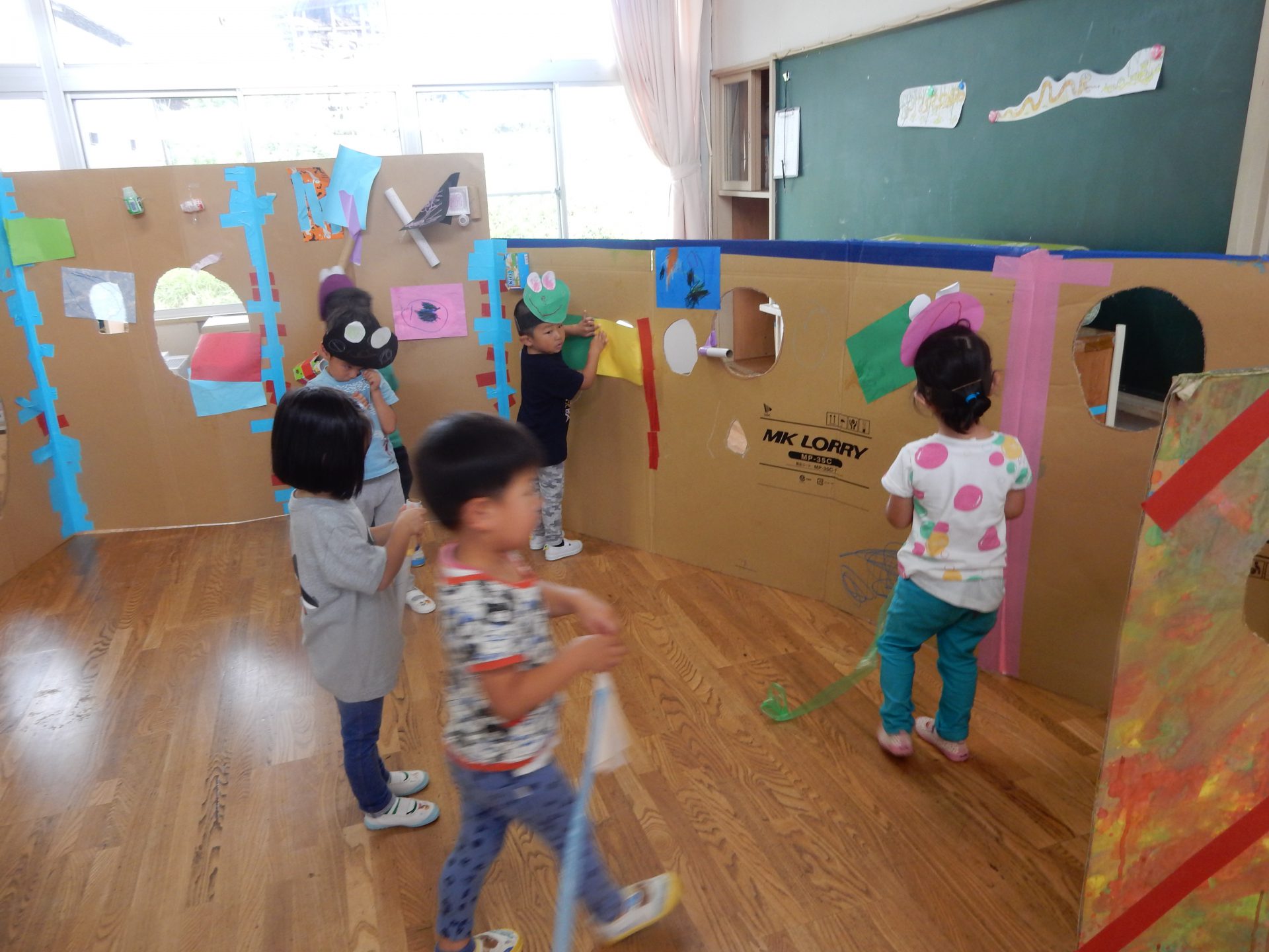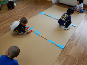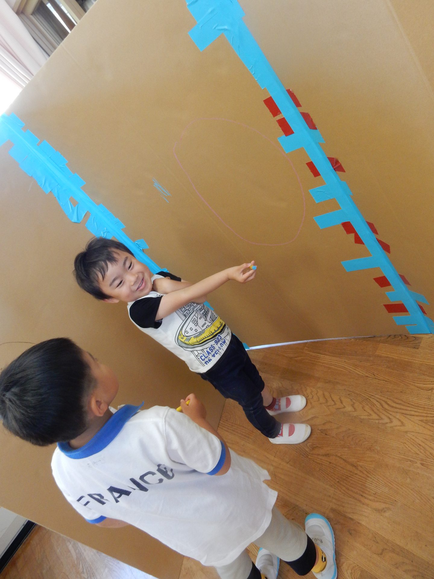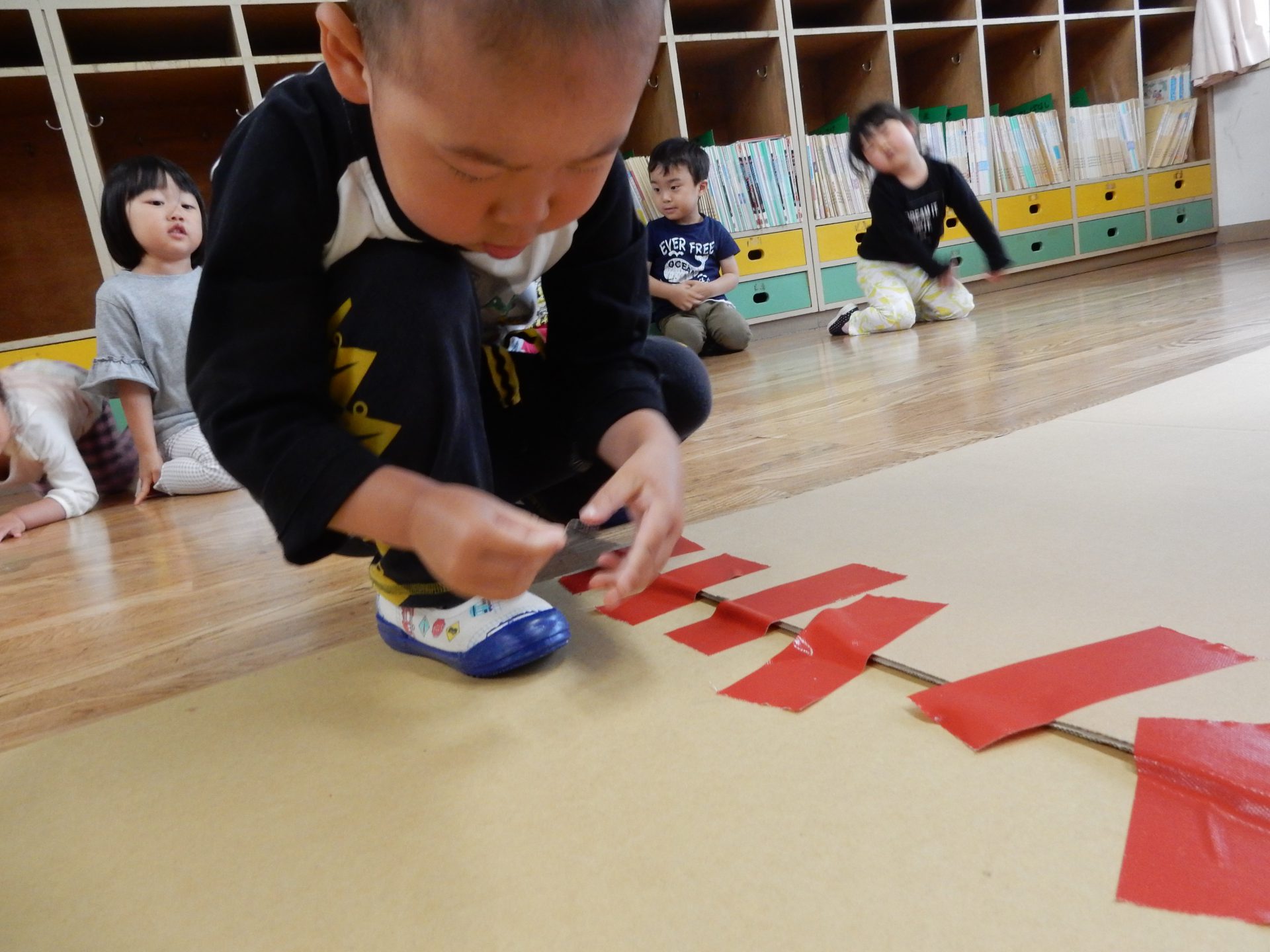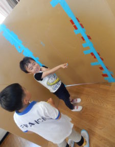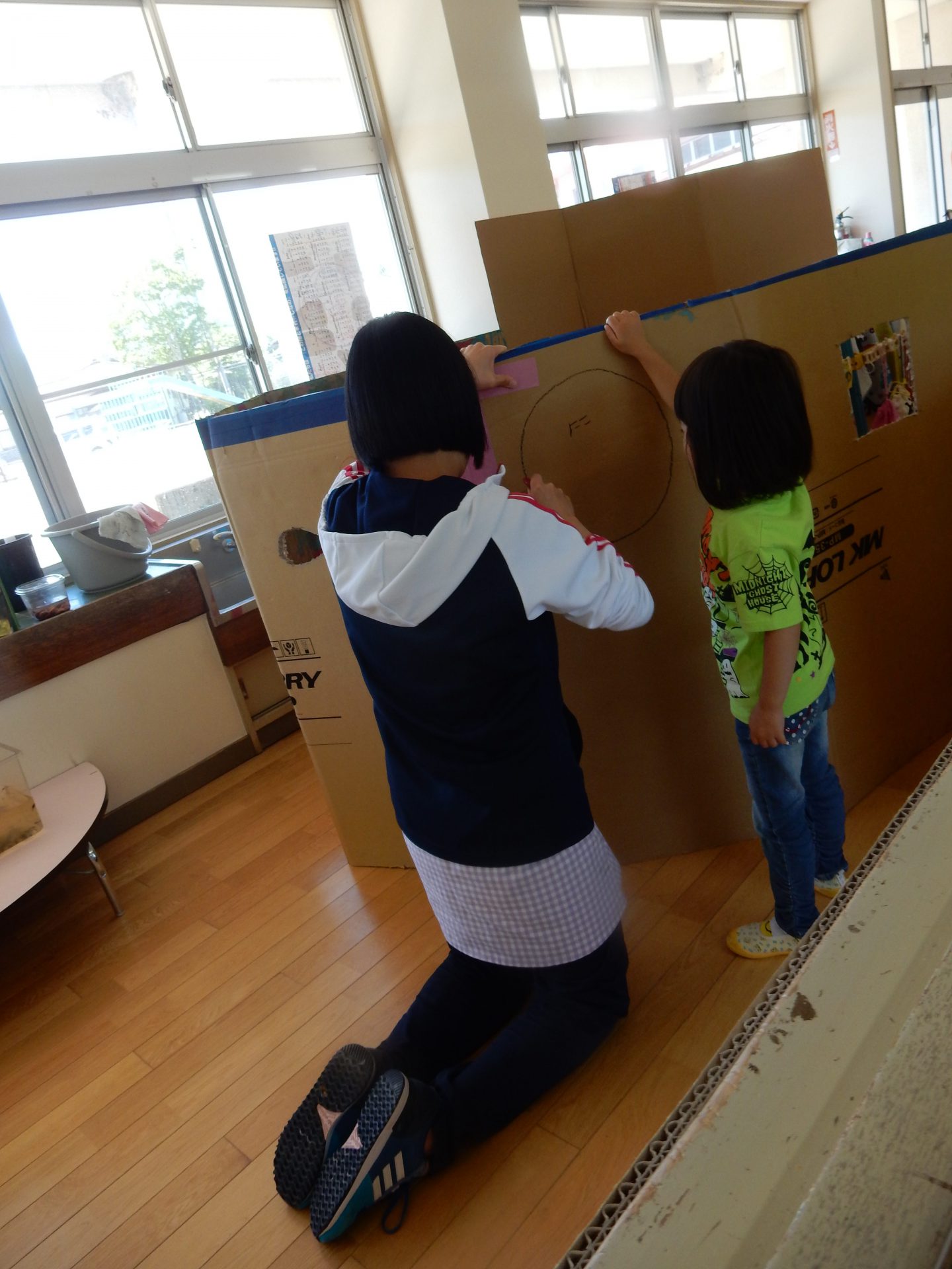 「何で作ろうか?」と問いかけると、「これがいいよ!」と置いてあったダンボールを見つけました。