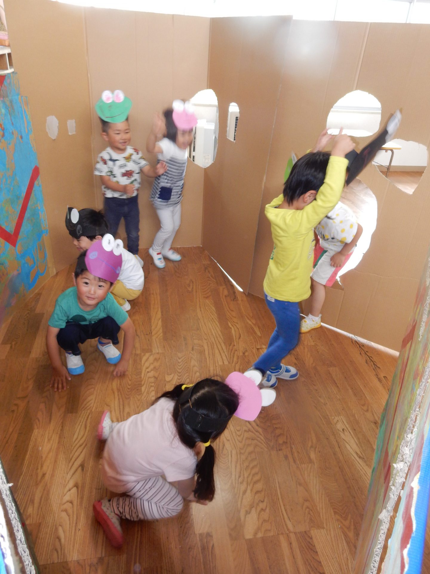 そこで、カエルに変身して遊ぼう‼︎と変身遊びをみんなで楽しみました。