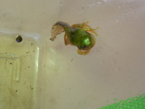 残念がっていると、「ここにもいるよ!」と言って捕まえたのはこんなカエル。カエル?おたまじゃくし?