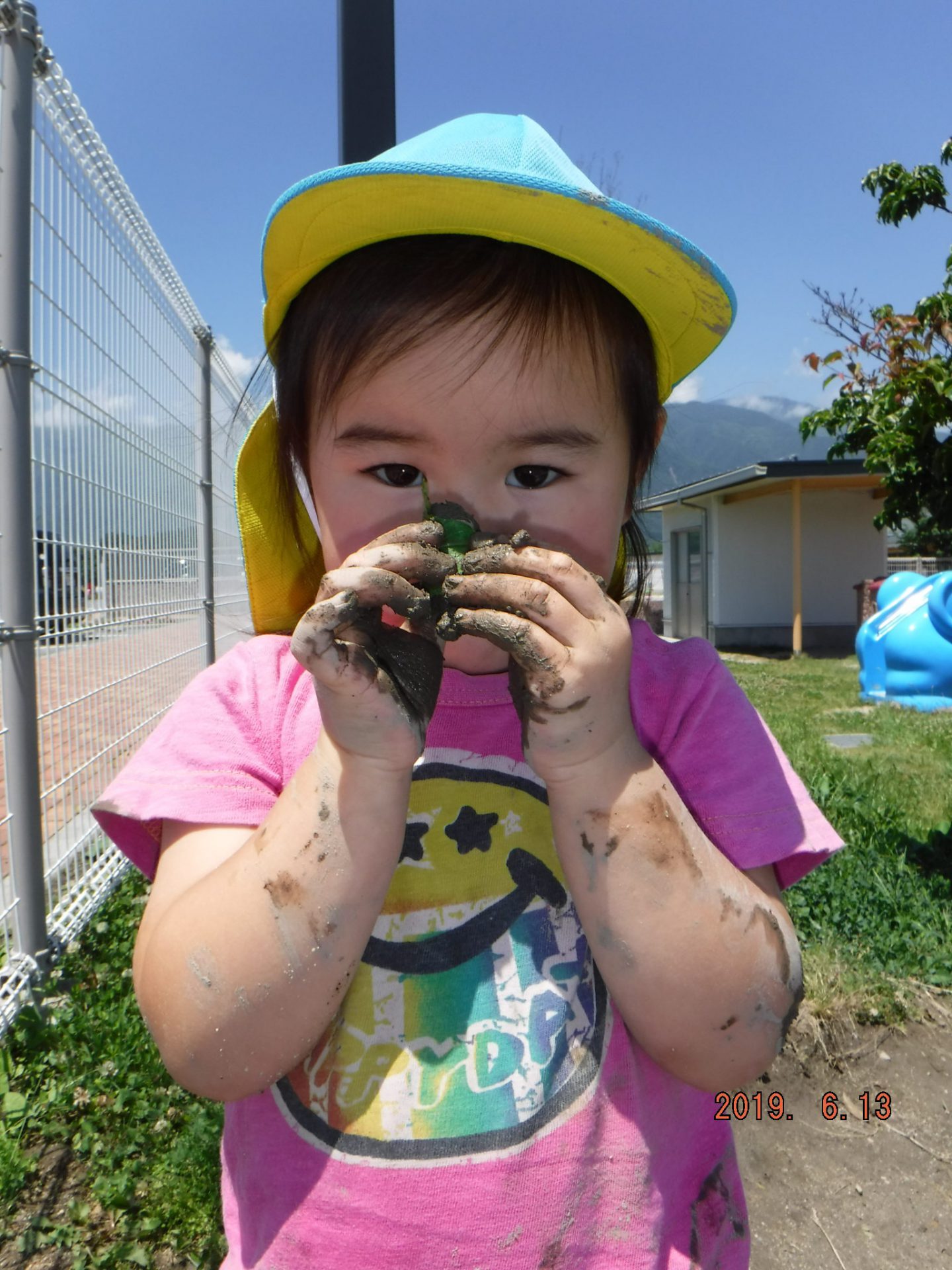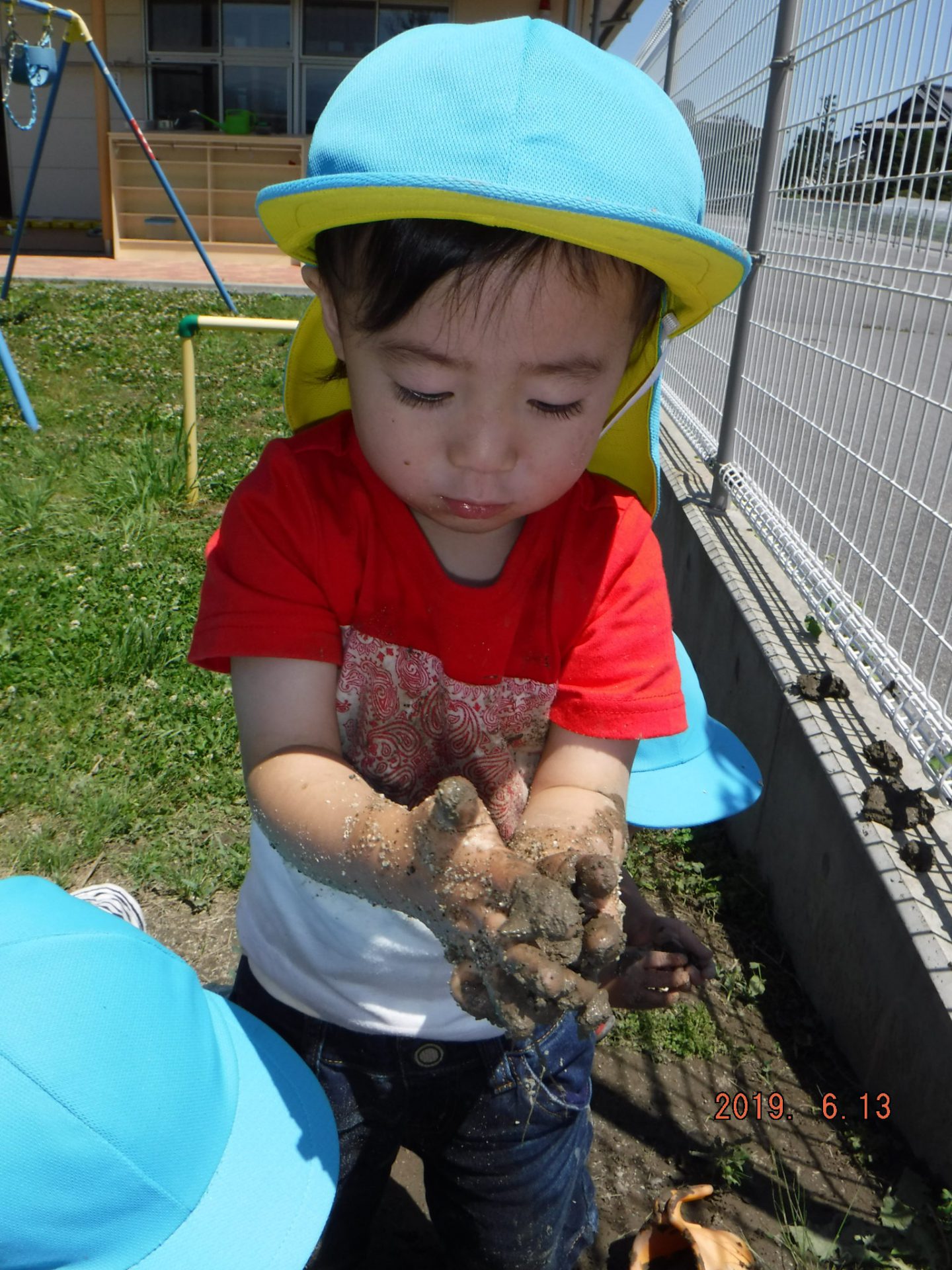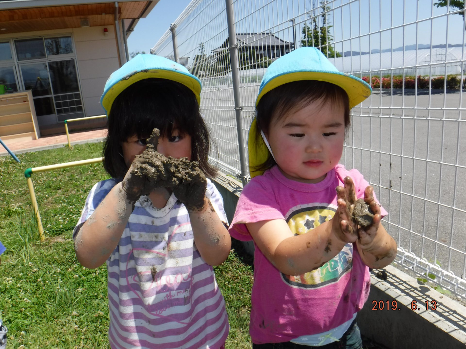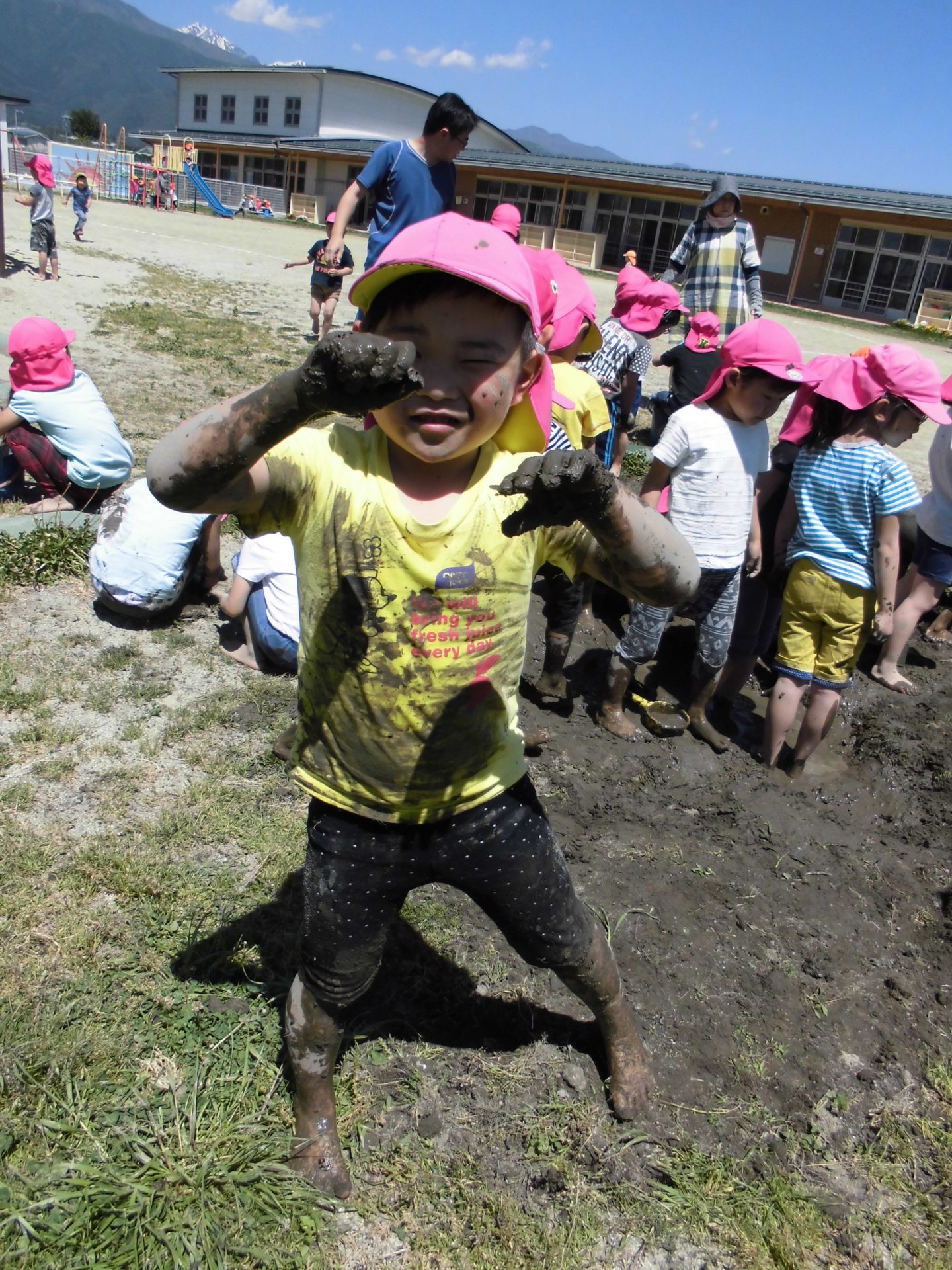 初めは、「いやだ~!」と泥に触れない子もいましたが、