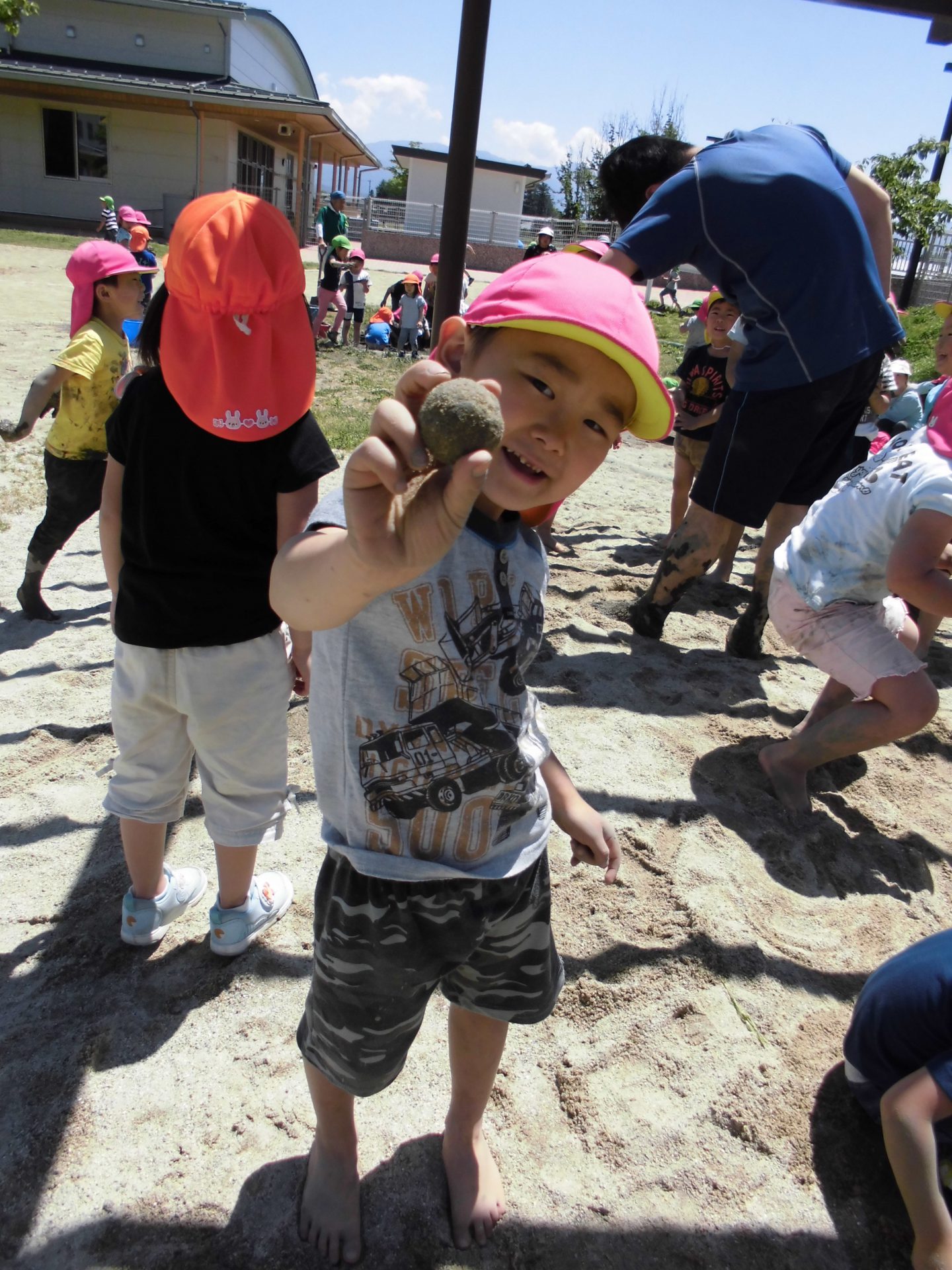 泥だんごづくりではなく、泥おにぎりづくりをしていました。