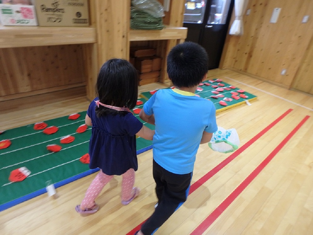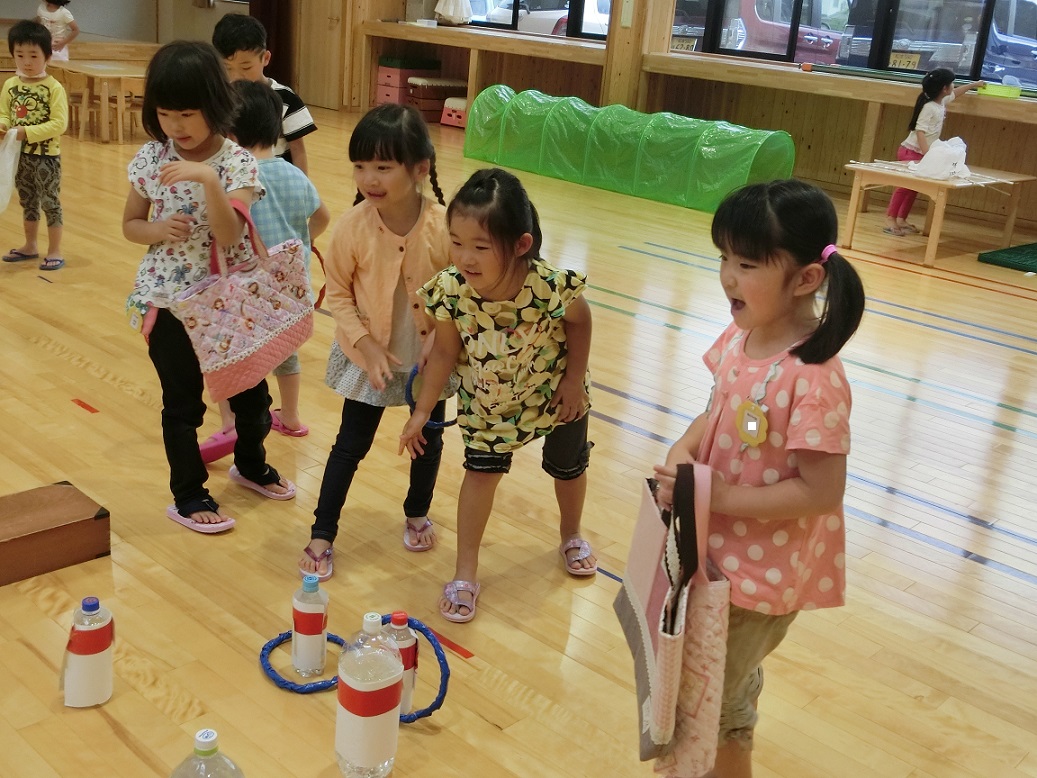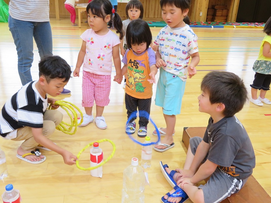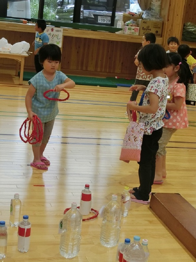 輪投げのコーナーです。楽しそうに投げていますね。