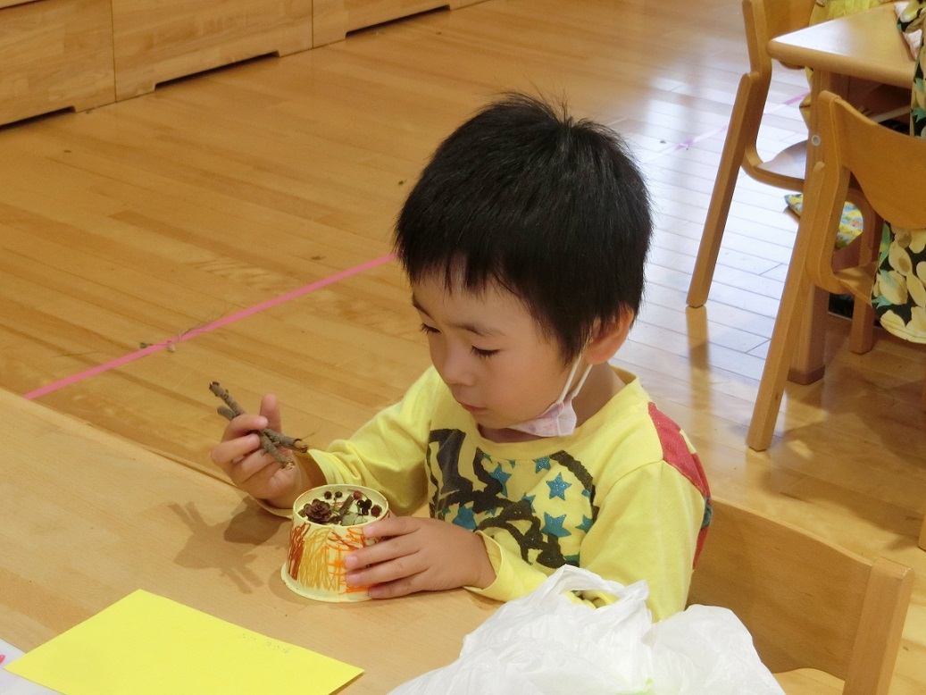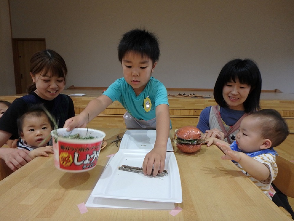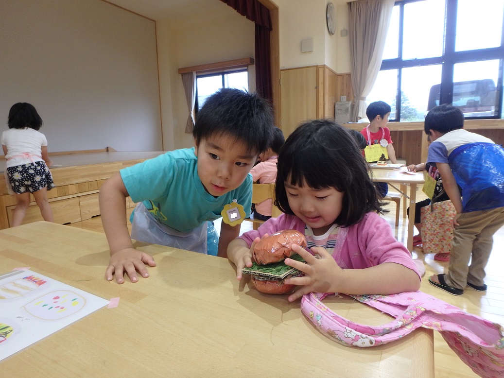 東みのわ保育園では年長児が中心となりごっこ遊びを楽しみました。戸外でしたかったのですが天気の関係で室内に・・・少し残念。