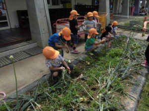 8月には この玉ねぎとじゃがいもを使ってカレー会をしたいとはりきっている年長児です。