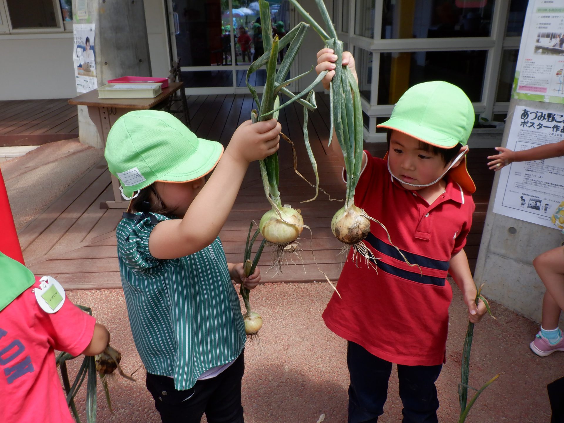 年長に進級してから 玉ねぎの緑の部分が大きくなってきたことを楽しみに見ていた子どもたち。