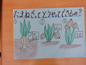 「(玉ねぎができるのは)土の中だ!」と 疑問が晴れて収穫がまずます楽しみになりました。