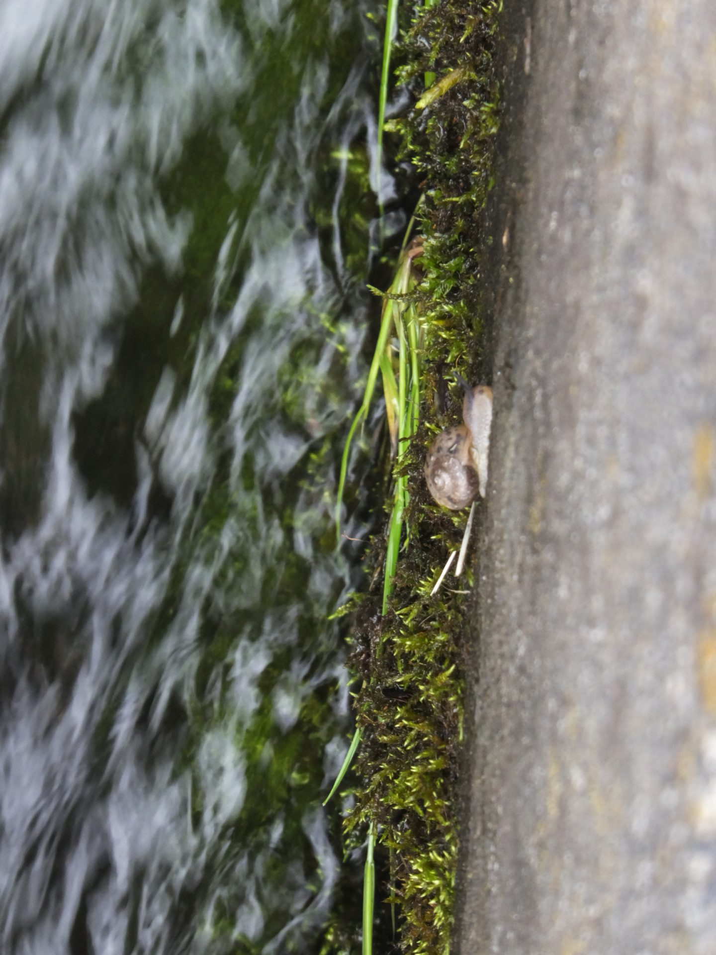 「川の壁にカタツムリがいっぱい!」