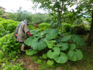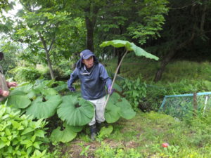 「ほれ、もってきー」と、ふきを採ってくださいました。