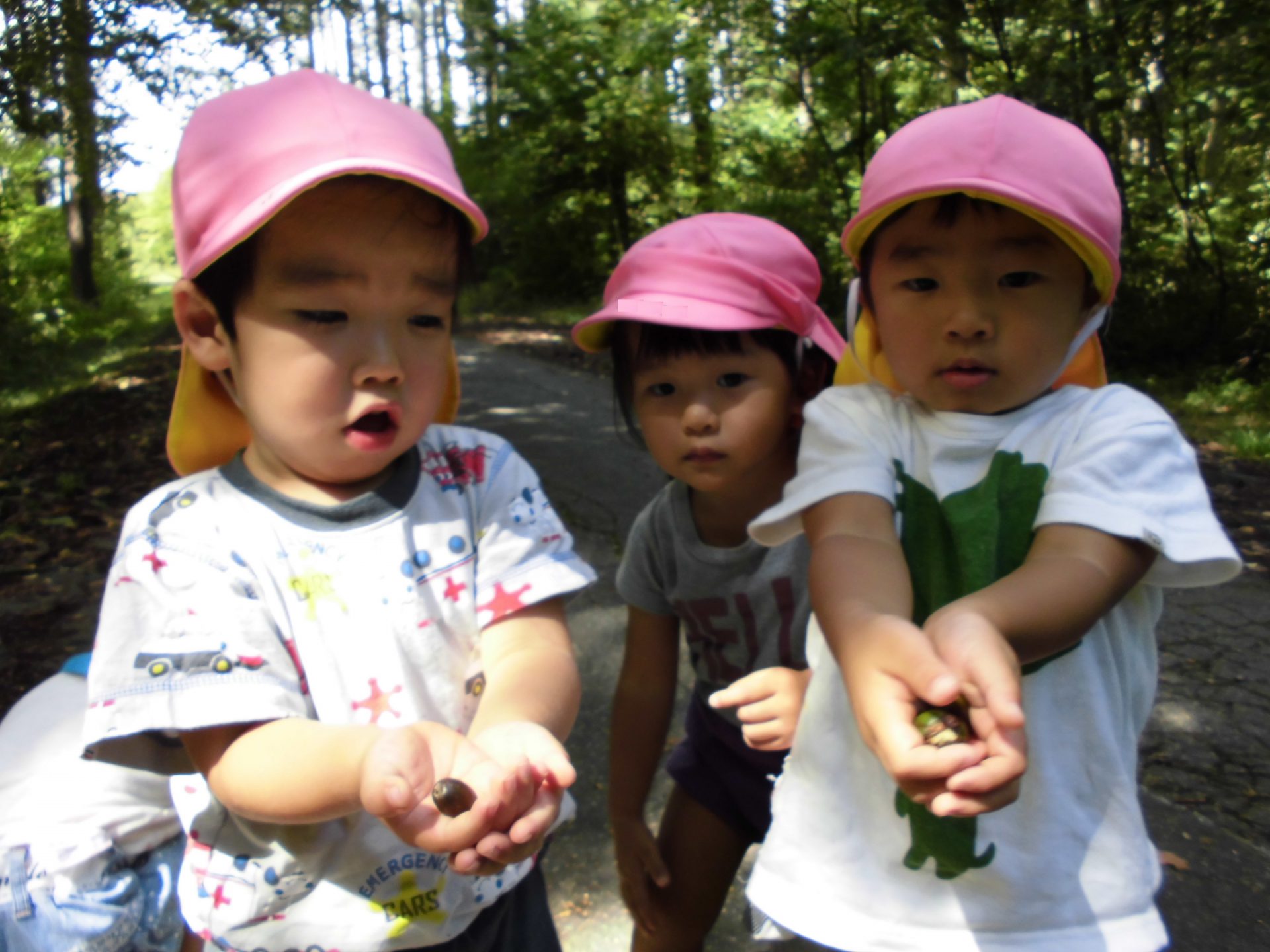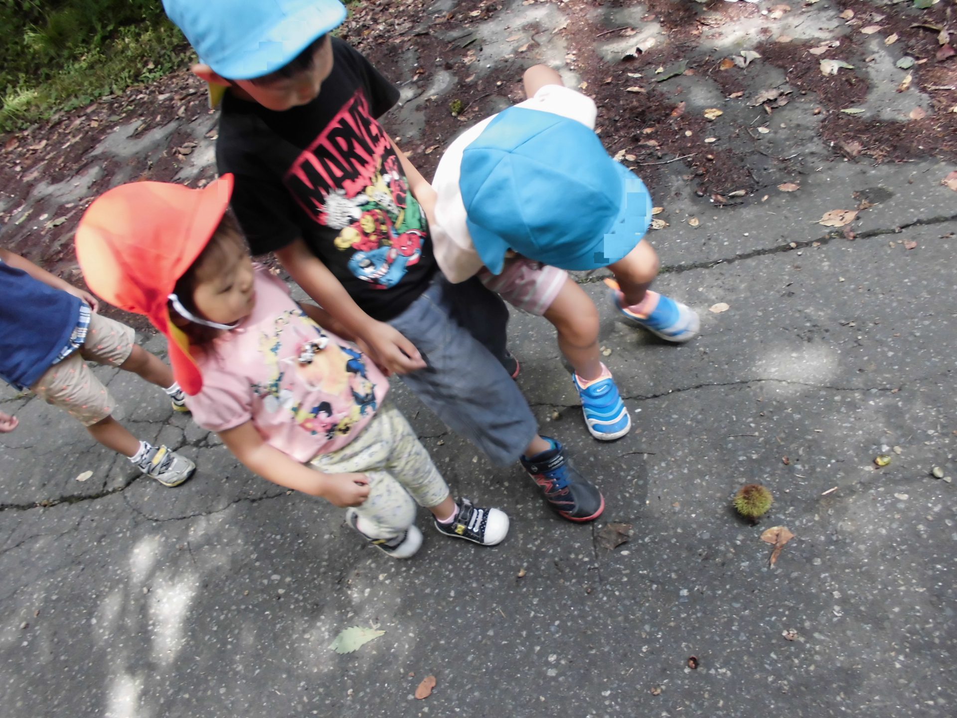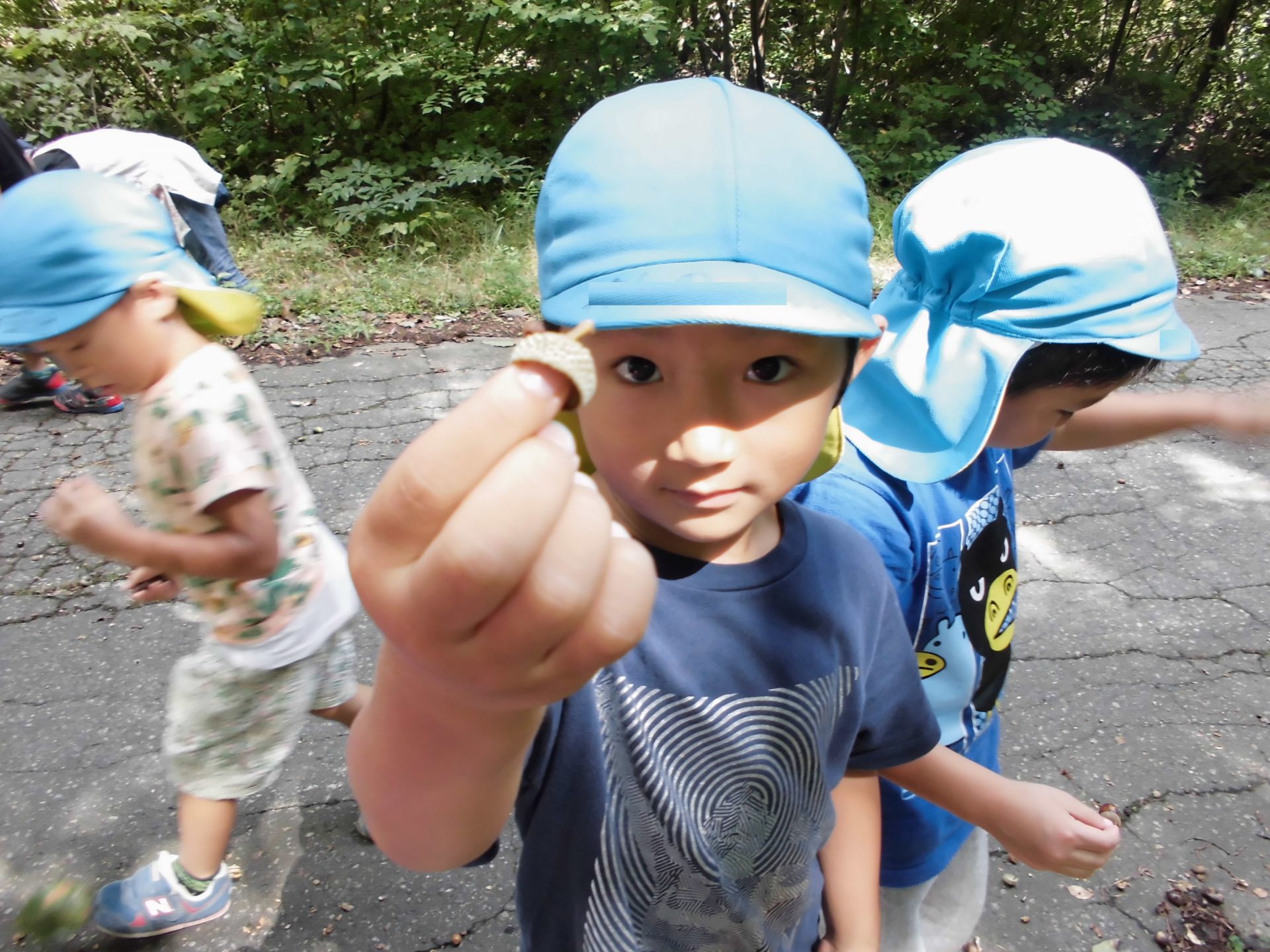 お散歩コースに転がっているどんぐりに大喜びの子どもたち。
