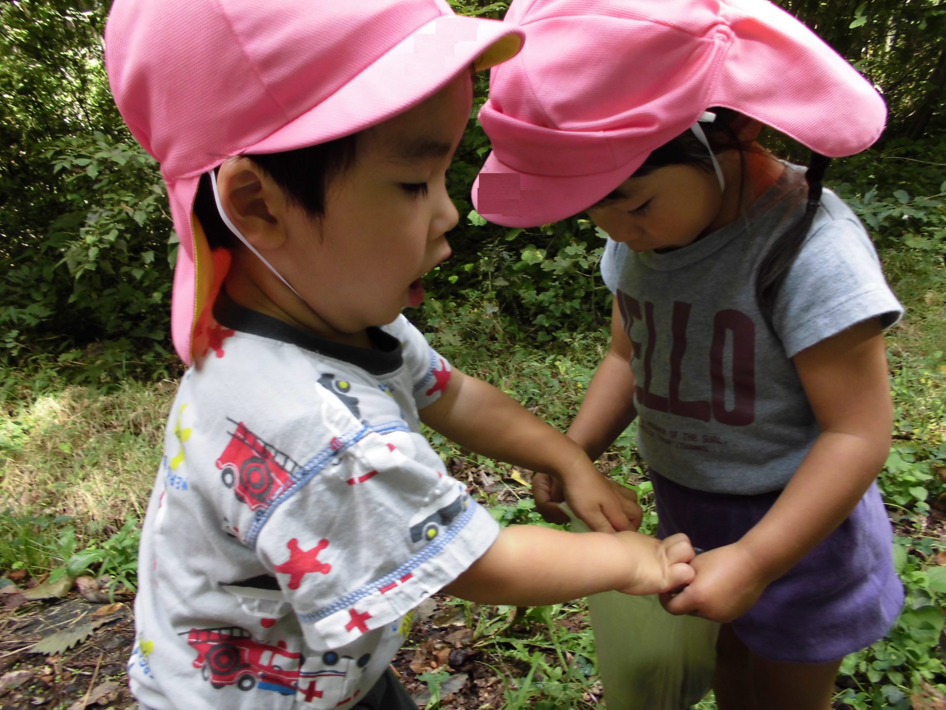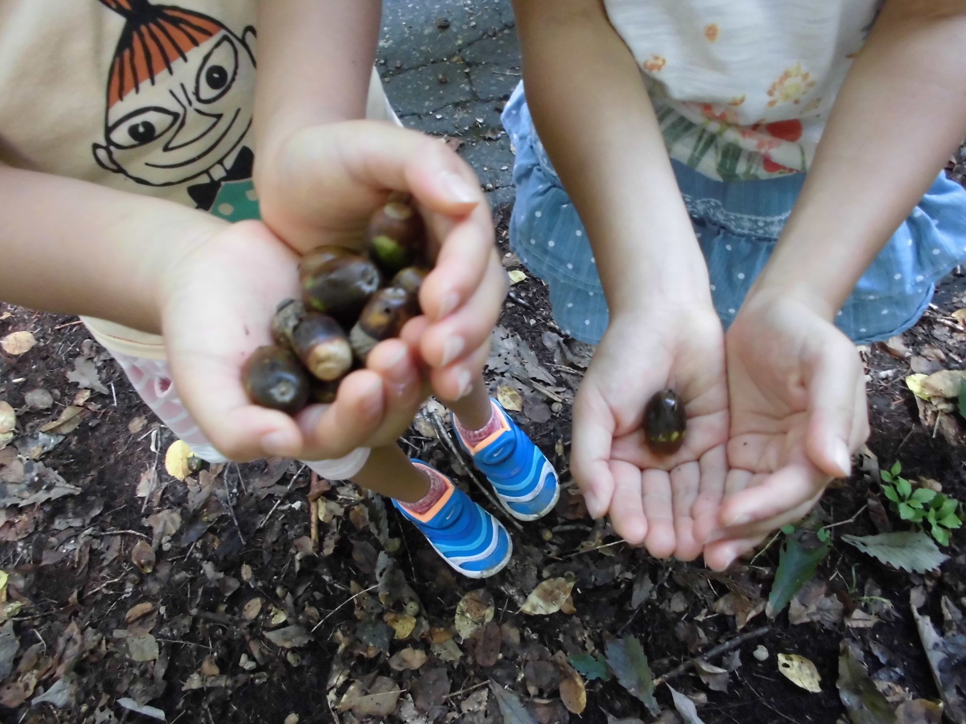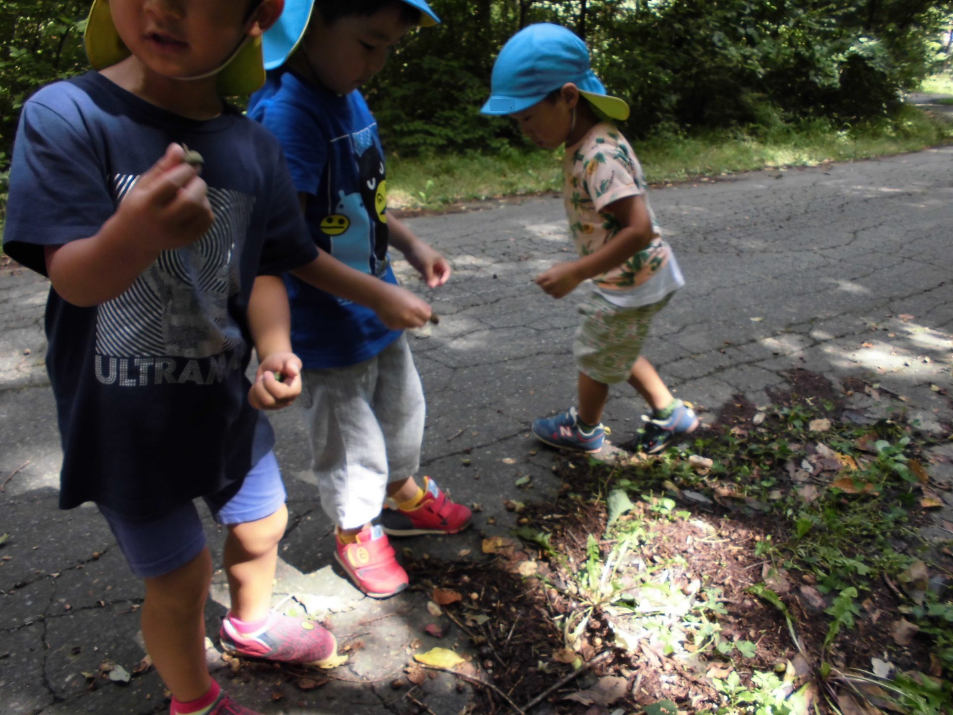 お散歩コースに転がっているどんぐりに大喜びの子どもたち。
