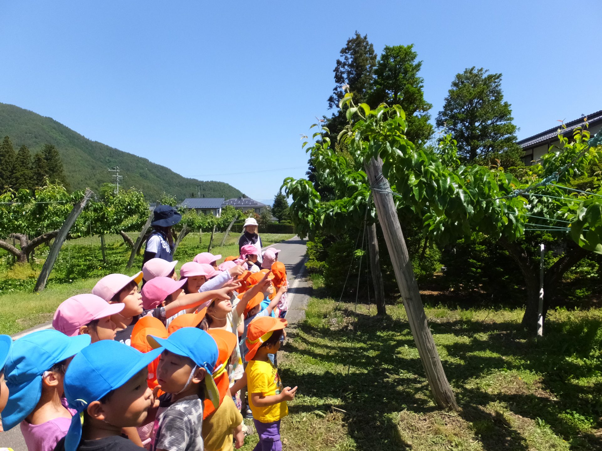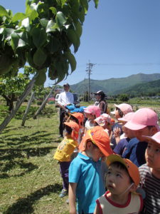 園の周りには果樹園が広がり、園児のなかにも果樹栽培農家の家庭もあります。