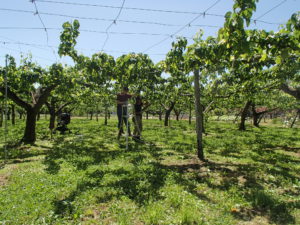 梨畑で、摘果作業をしている農家の方に出会いました。