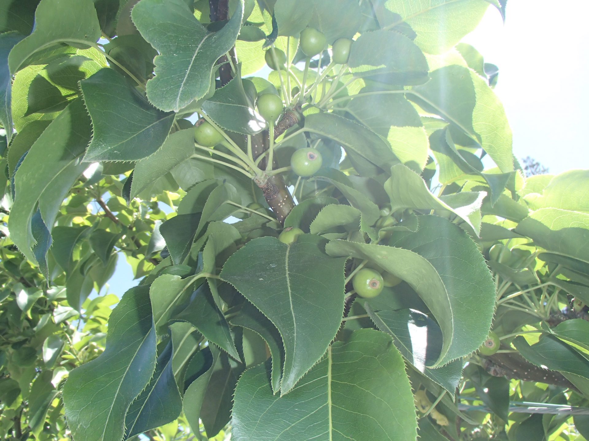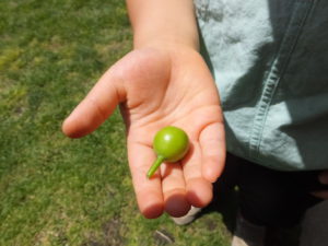 「梨の赤ちゃんだよ。ほら!」と摘果した実を見せてくれました。