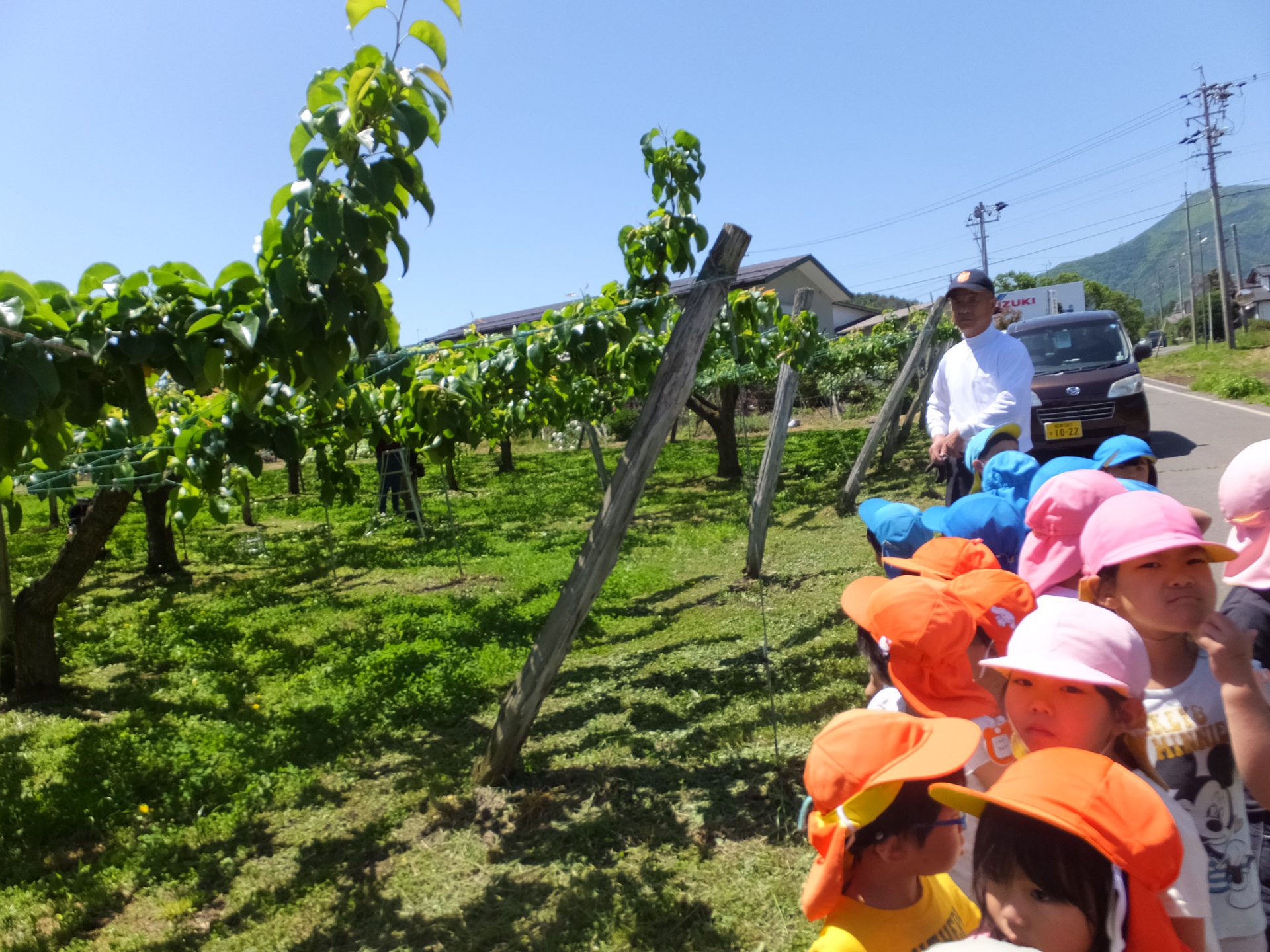「がんばってください」とみんなで声をかけ、梨畑を後にしました。