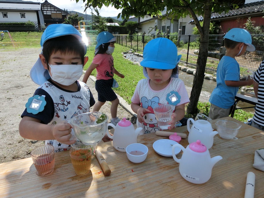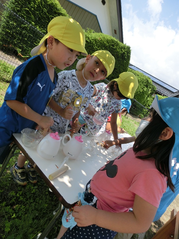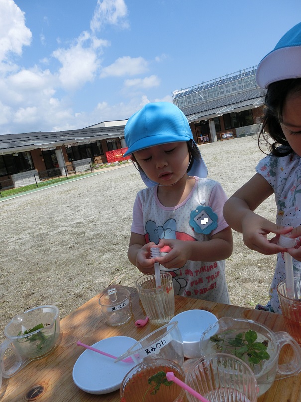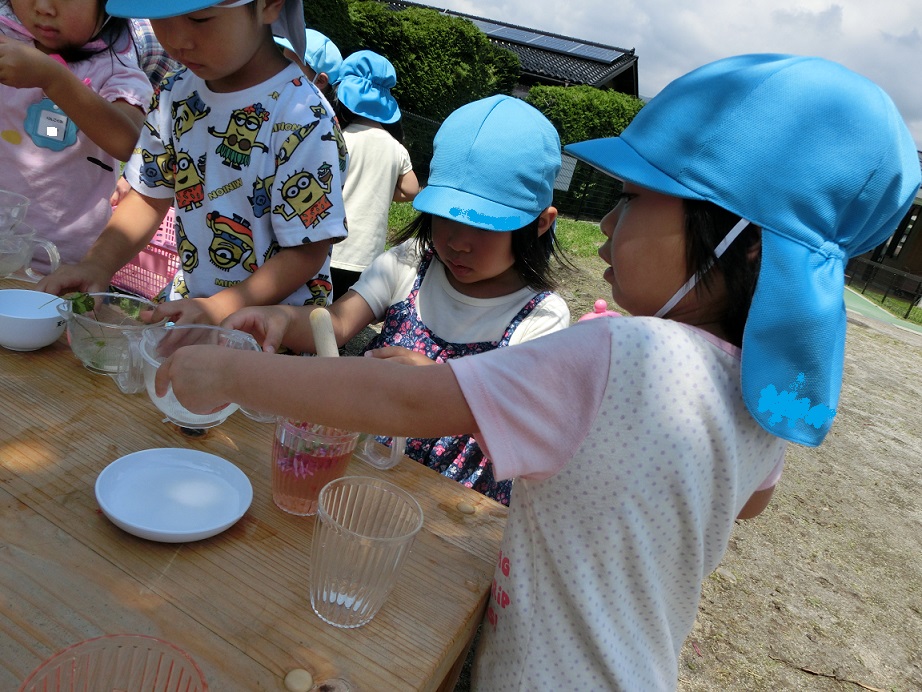ジュースの作り方を年長児が年少児に教えている姿を見ることができて良かったです。