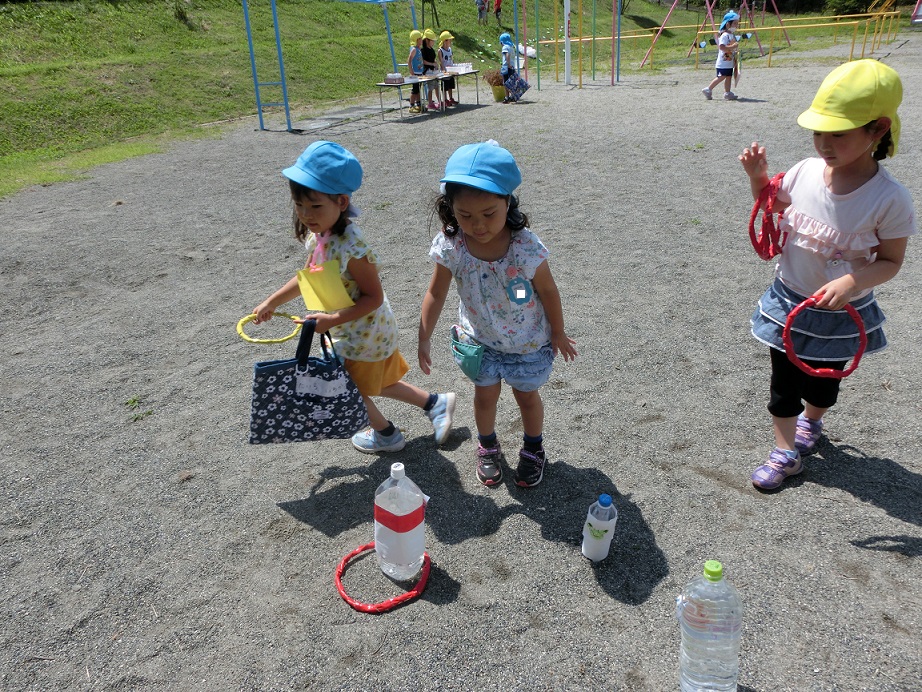 輪投げコーナー。年少児を年長児が優しく見守っています。