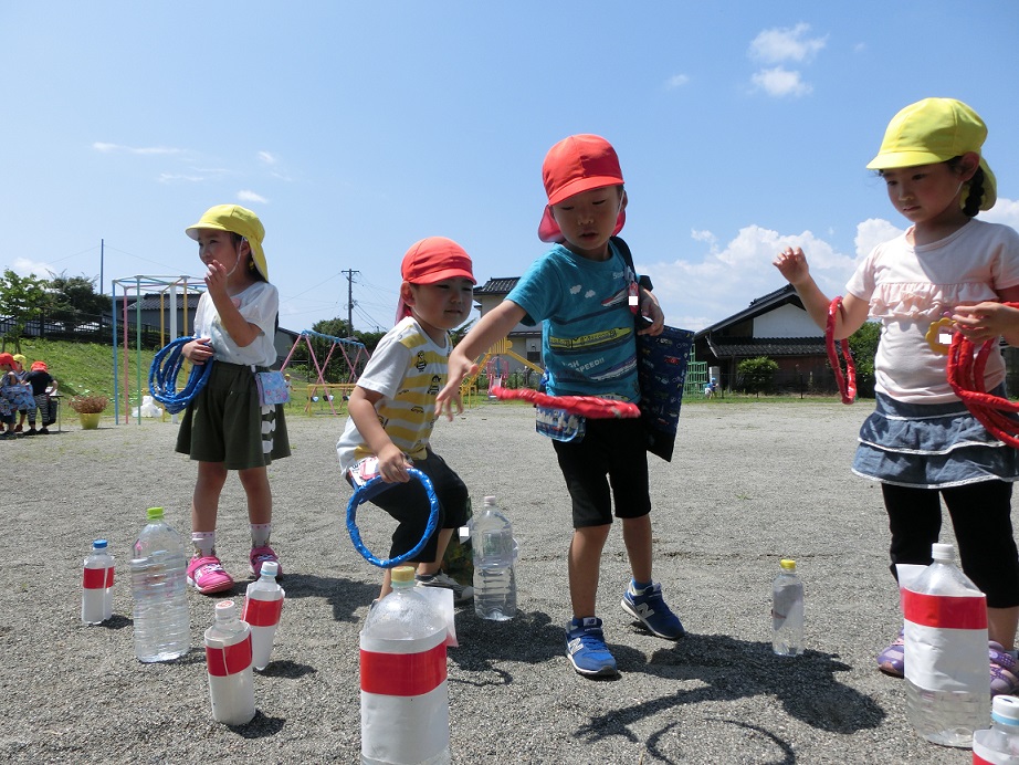 年中児はかっこよく投げています。