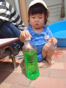・ペットボトルを振ることで、急な変化が子どもたちの興味を注ぎ、喜びや楽しみを感じているようでした。