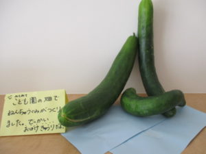 子どもたちの世話のおかげできゅうりの赤ちゃんとなすのあかちゃんができました。