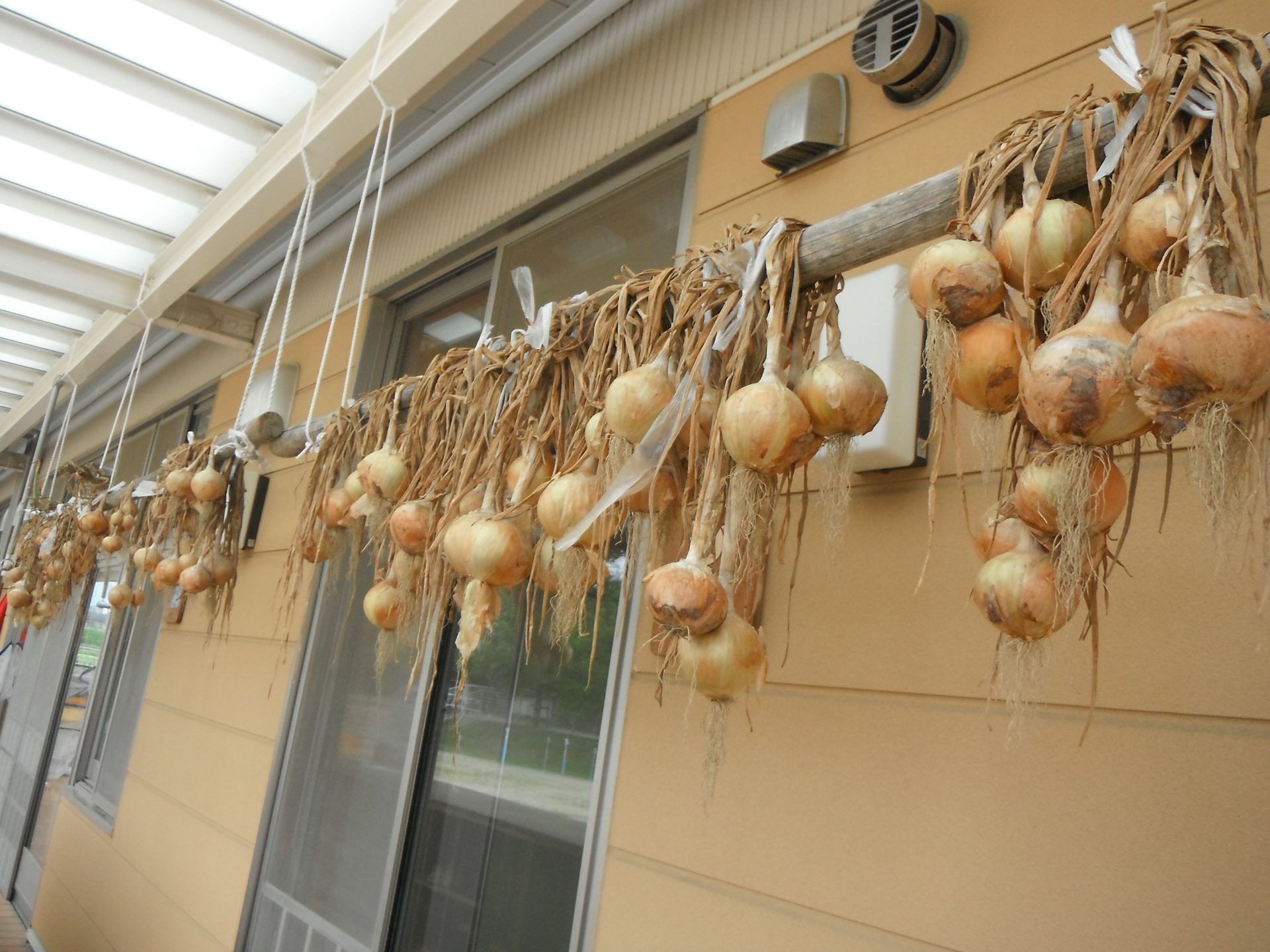 テラスに干した玉ねぎを見て「あっ!おばあちゃん家でもやってある!」