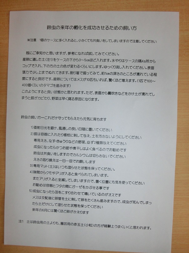 子ども達と飼育して成虫になっていい音色が聞けるのが楽しみです。