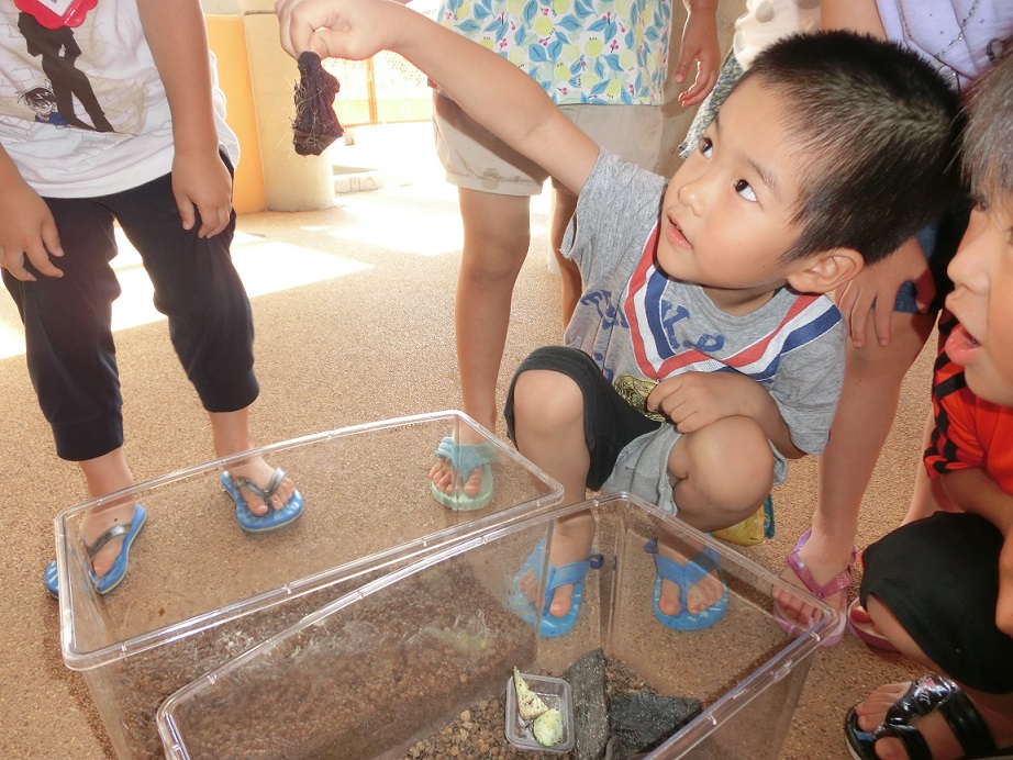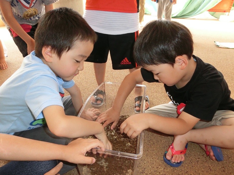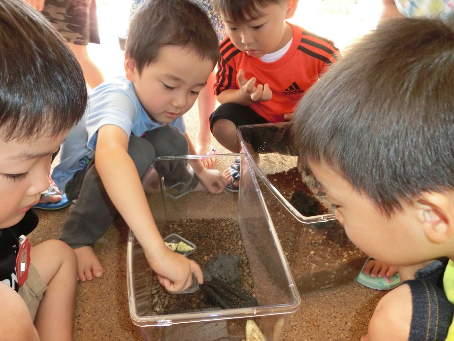 どの子も興味津々でやっていました。準備した飼育ケースに引っ越しさせるのにどうやったら引っ越しさせられるかを真剣に考える姿が見られました。