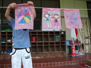 リズムで使うはちまき。 これもマリーゴールドで染めました!