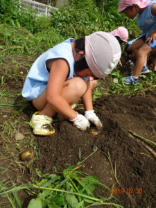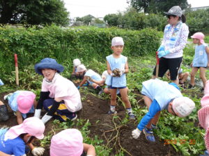 ジャガイモを掘り出していく中で、大きさ・重さ・色の変化など様々な違いに気づき、比べようとする探求心。