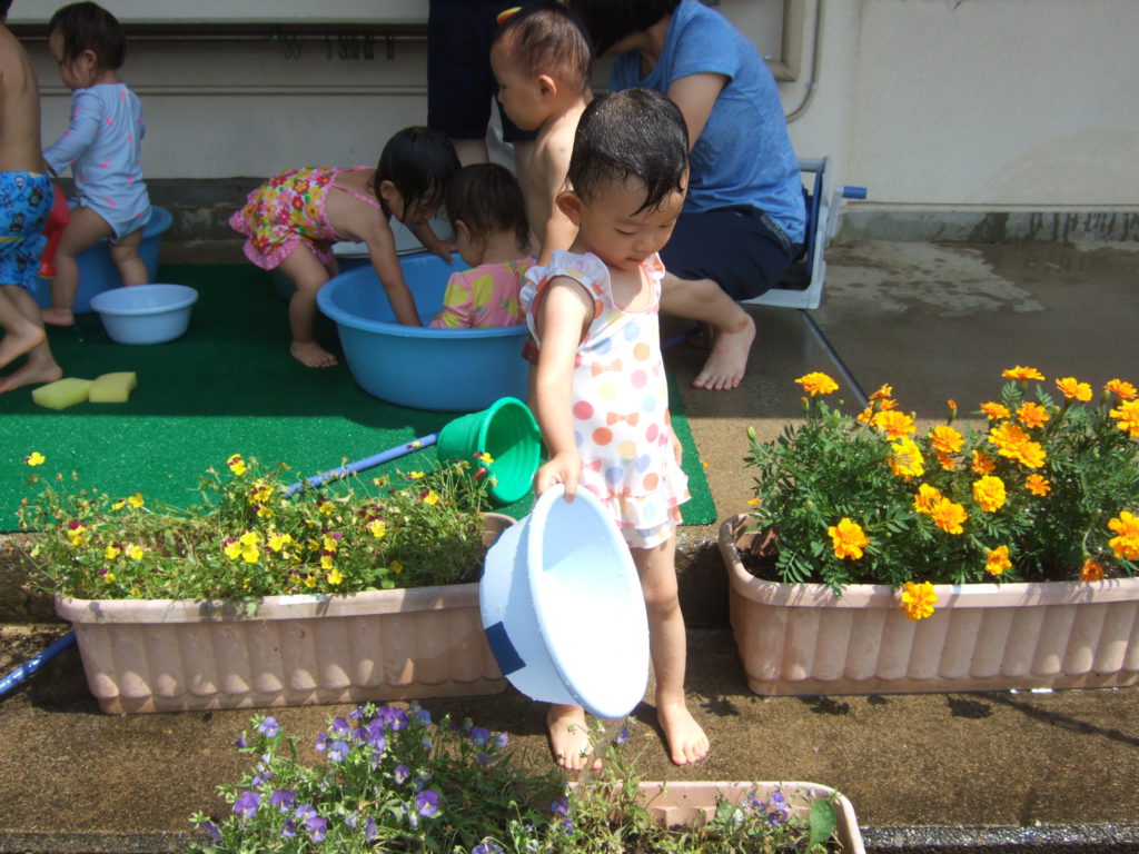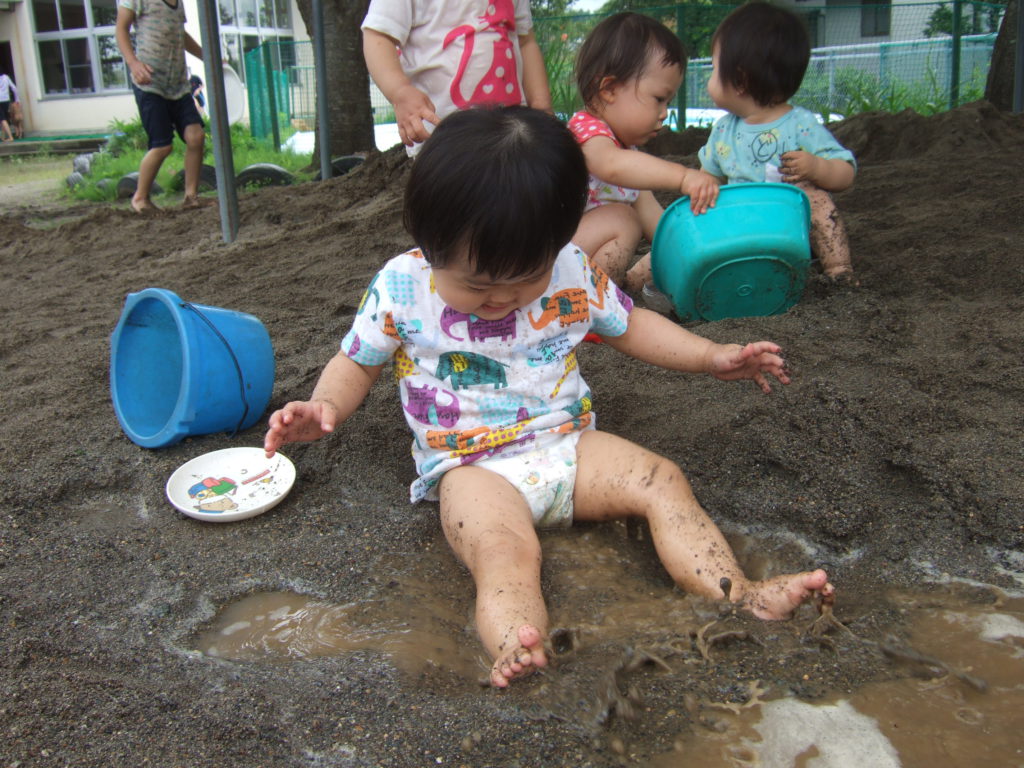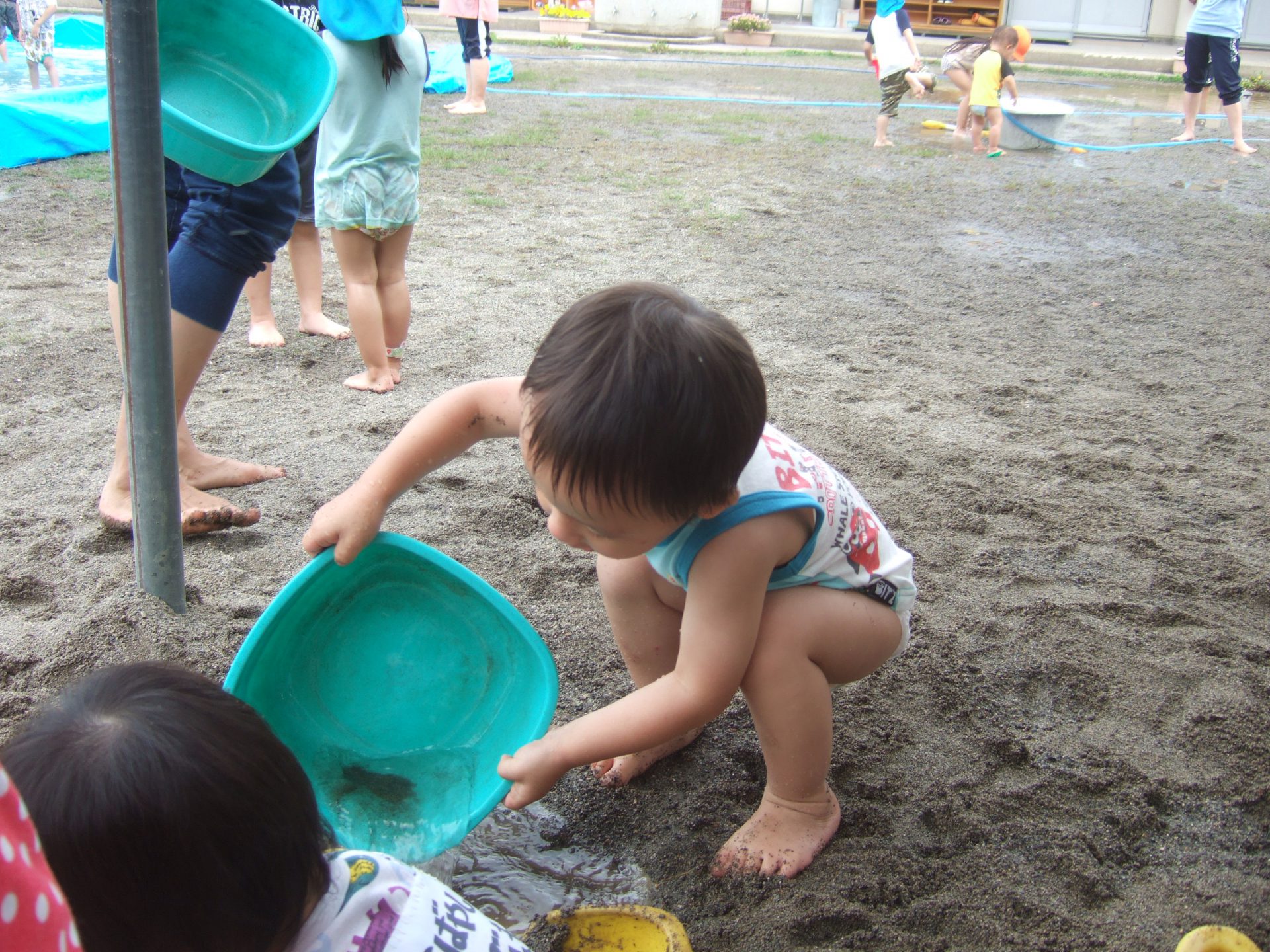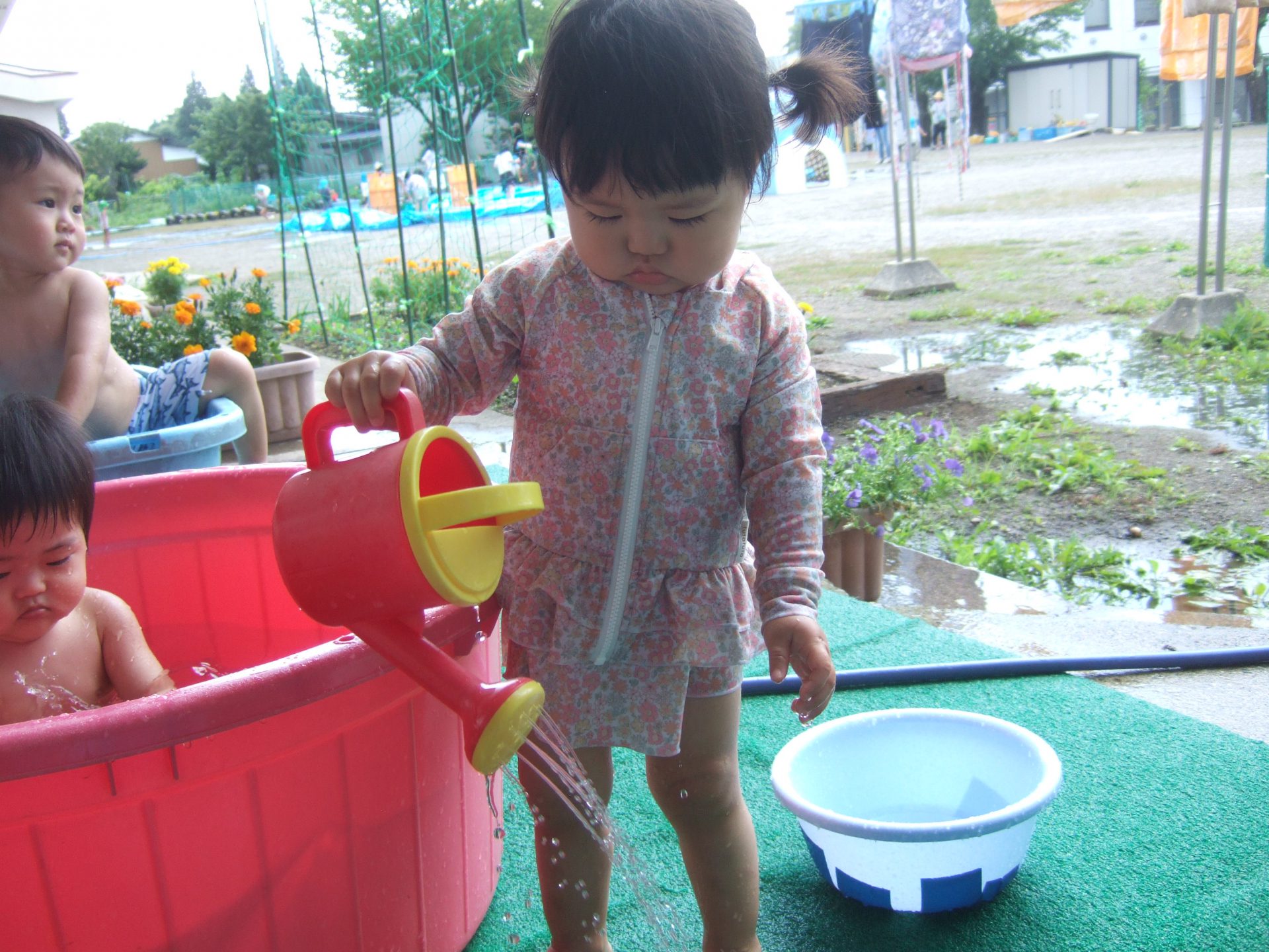 いろいろ試したい気持ちで溢れている子どもたち。遊びの中でたくさん試して経験していくなかで、感じたことや気づいたことを言葉やしぐさなどで表現する姿も見られます。一人ひとりの表現を受け止め共感しながら保育士も一緒に楽しんでいこうと思います。暑い夏、たくさん楽しもうね!