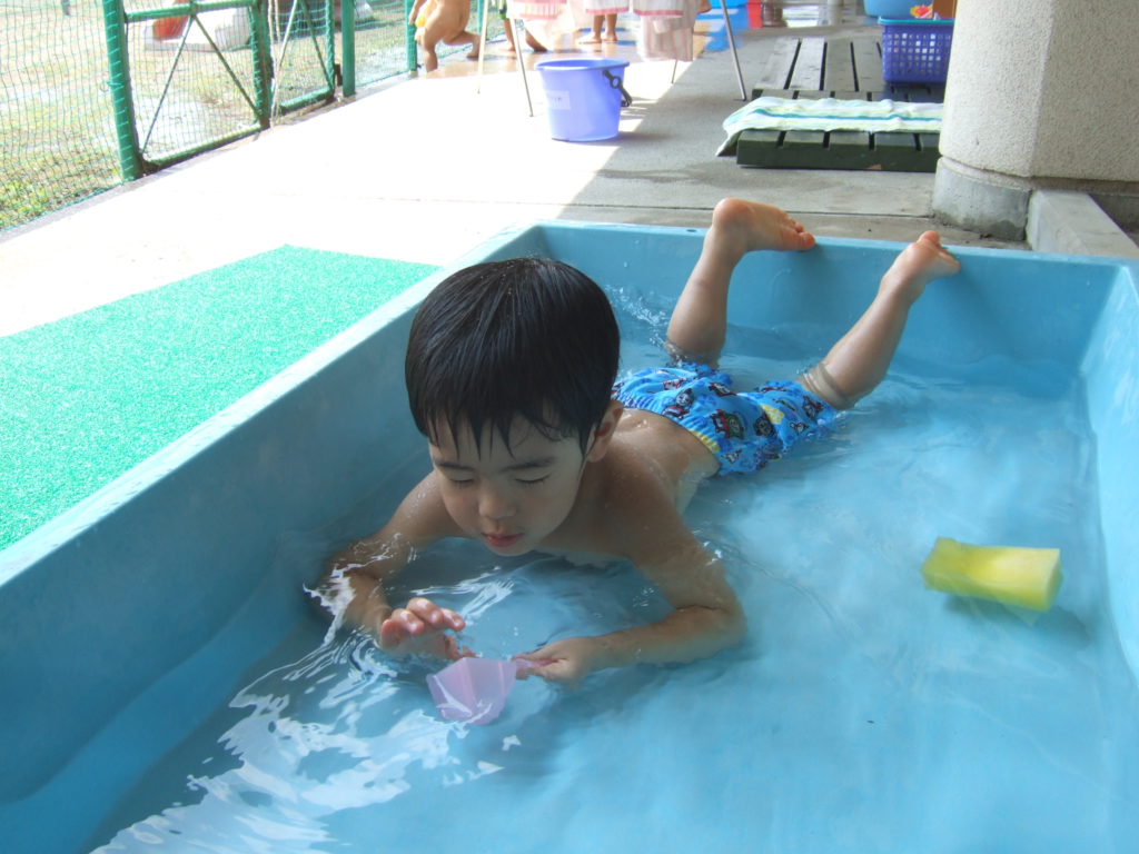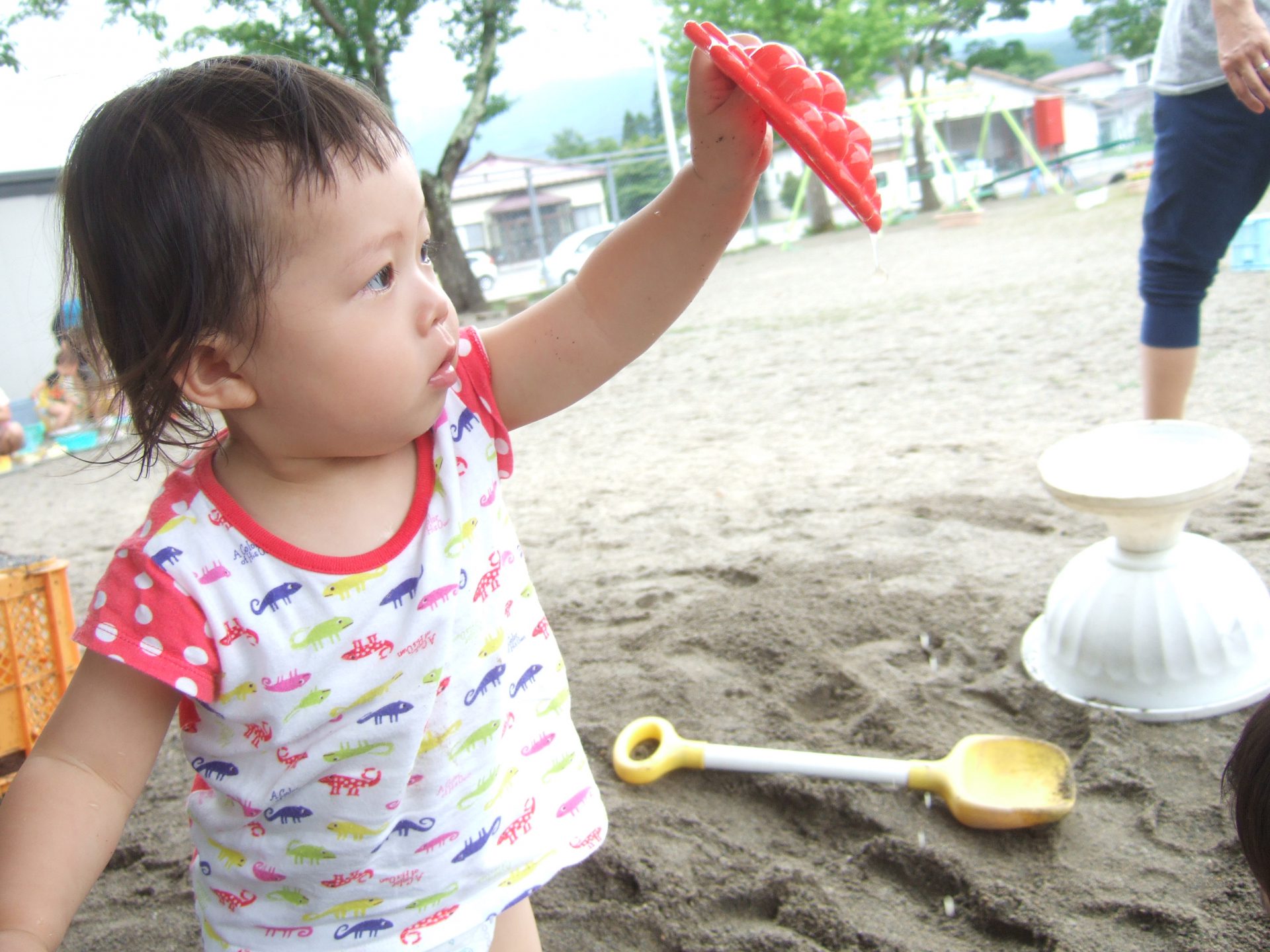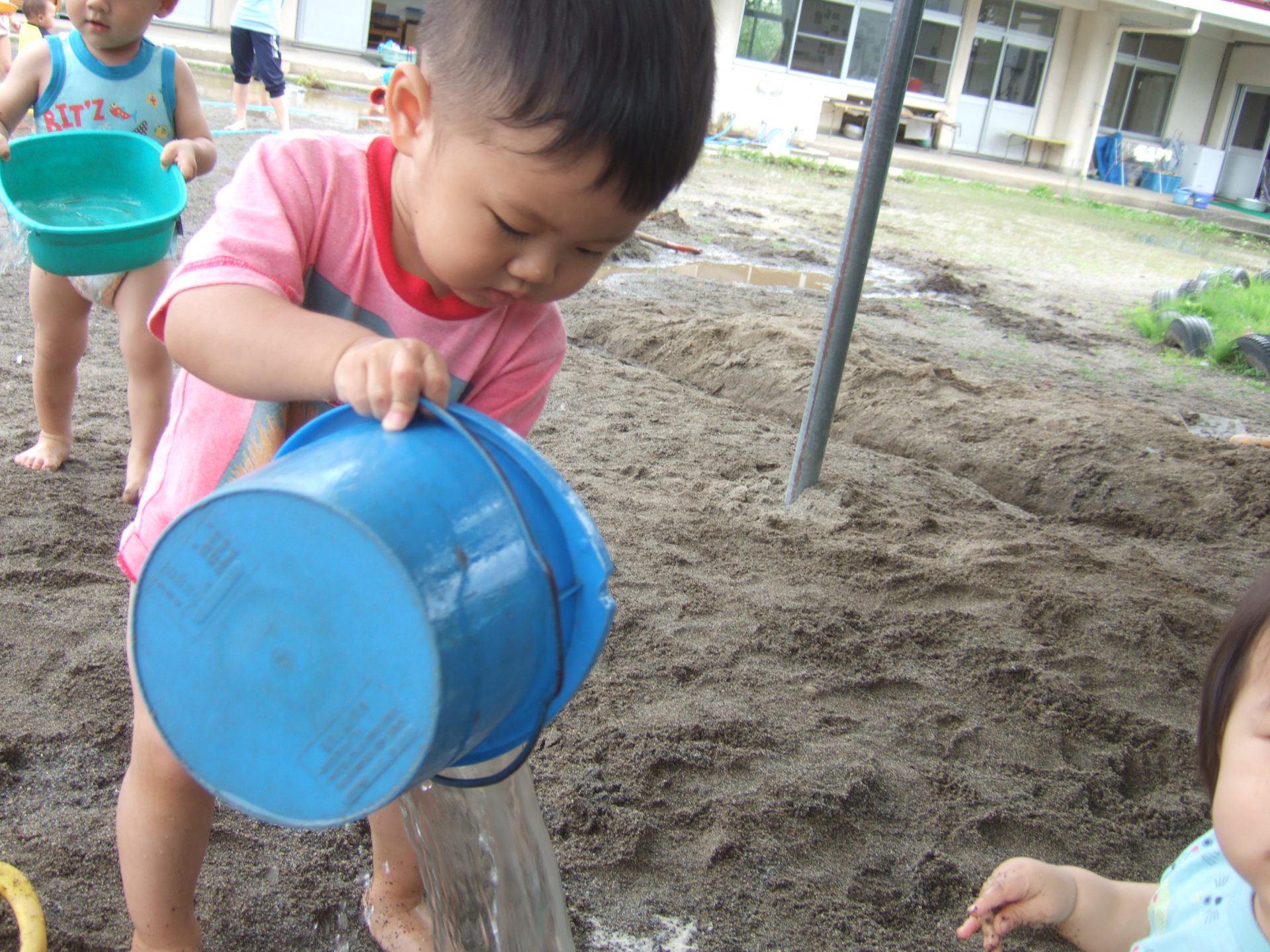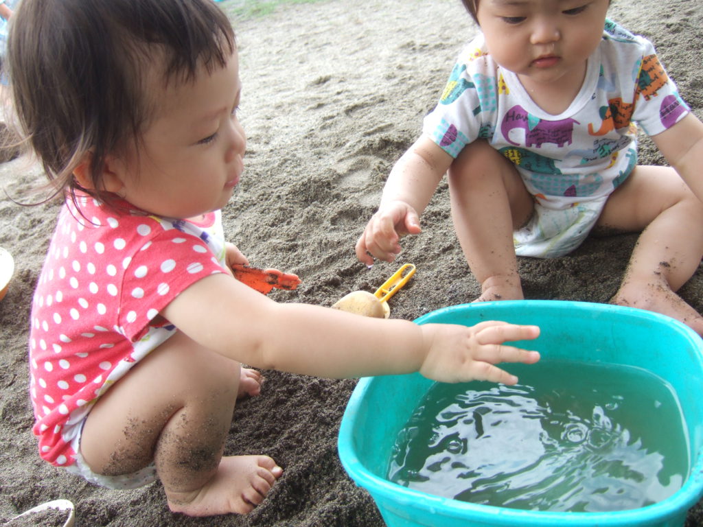 いろいろ試したい気持ちで溢れている子どもたち。遊びの中でたくさん試して経験していくなかで、感じたことや気づいたことを言葉やしぐさなどで表現する姿も見られます。一人ひとりの表現を受け止め共感しながら保育士も一緒に楽しんでいこうと思います。暑い夏、たくさん楽しもうね!