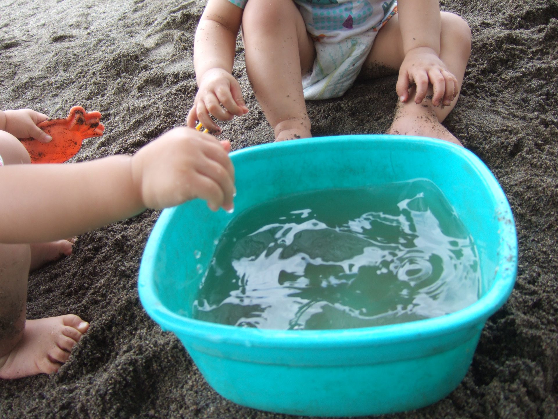 先日、いつも遊んでいる砂場に水を入れて置いておくと、