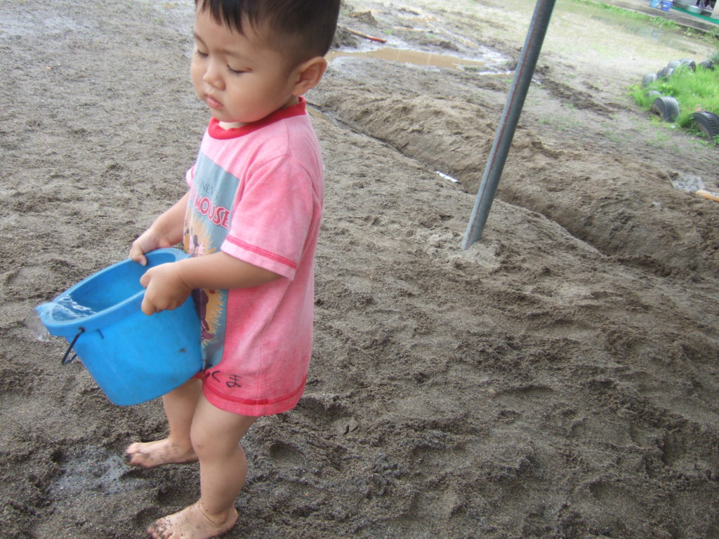そこへ、バケツに水をたっぷり汲んだお友達がやってきましたよ。
