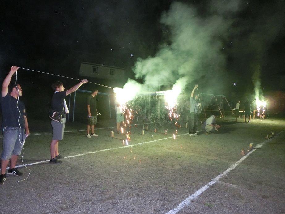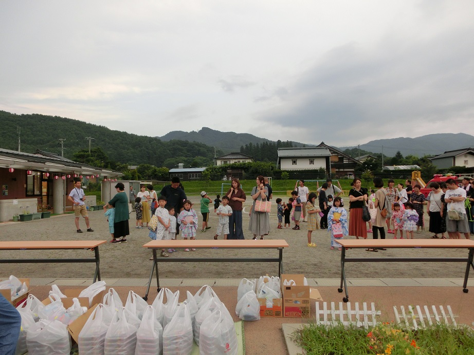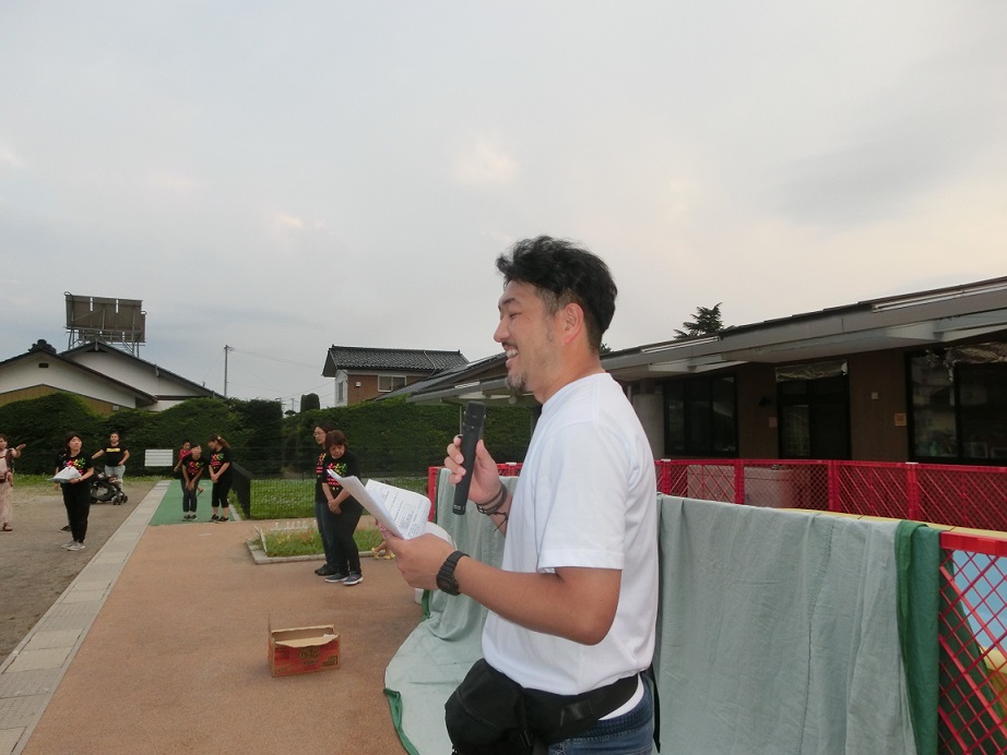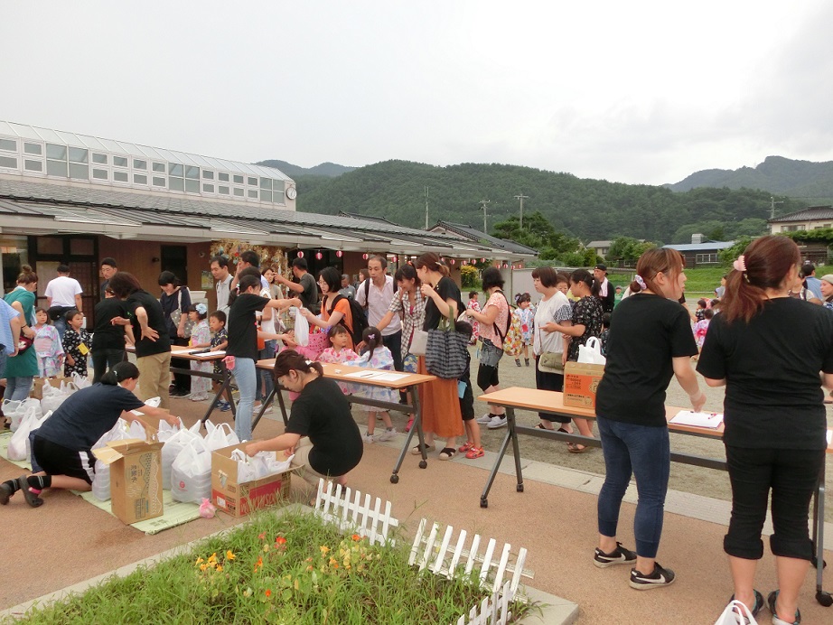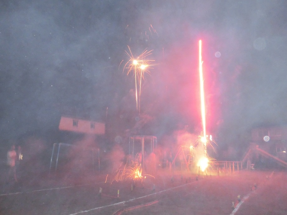 夏祭り当日は役員さん方が午後から子どもたちのためにと準備をしてくれます。その前からグループに分かれての準備もしていただき本当にありがたいことだと思います。楽しい夏祭りもそんな皆さんのお陰です。花火もお父さん方が準備から点火まですべてやってくれます。本当にありがとうございます。