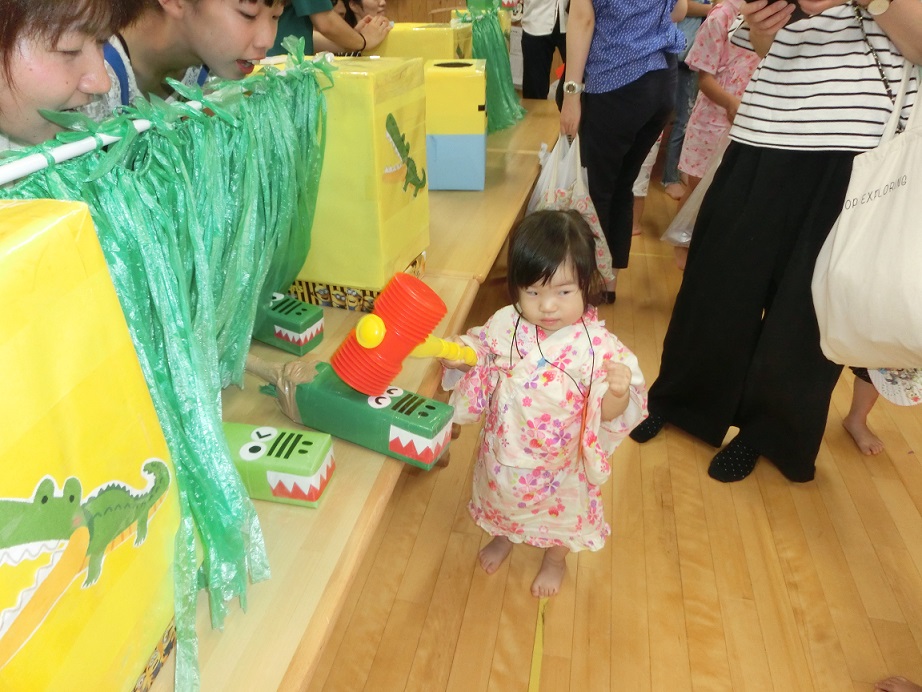 「ワニワニパニック」のコーナーです。1歳児も挑戦!