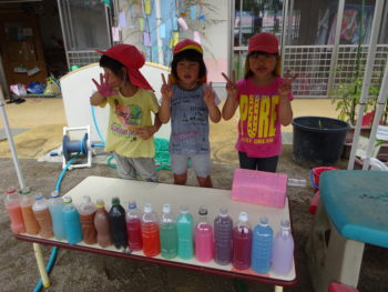 💗ジュースやさんでは、自然の草花を使った色水遊びをヒントに