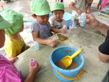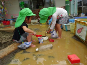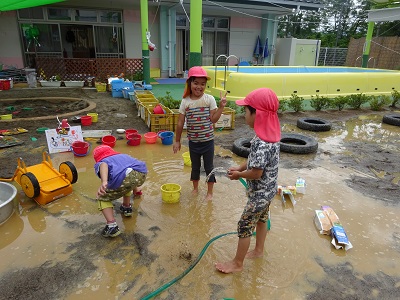 6月上旬から始まった泥んこ遊び。子どもたちは心も体も開放し、全身で泥の感触を味わっていました。