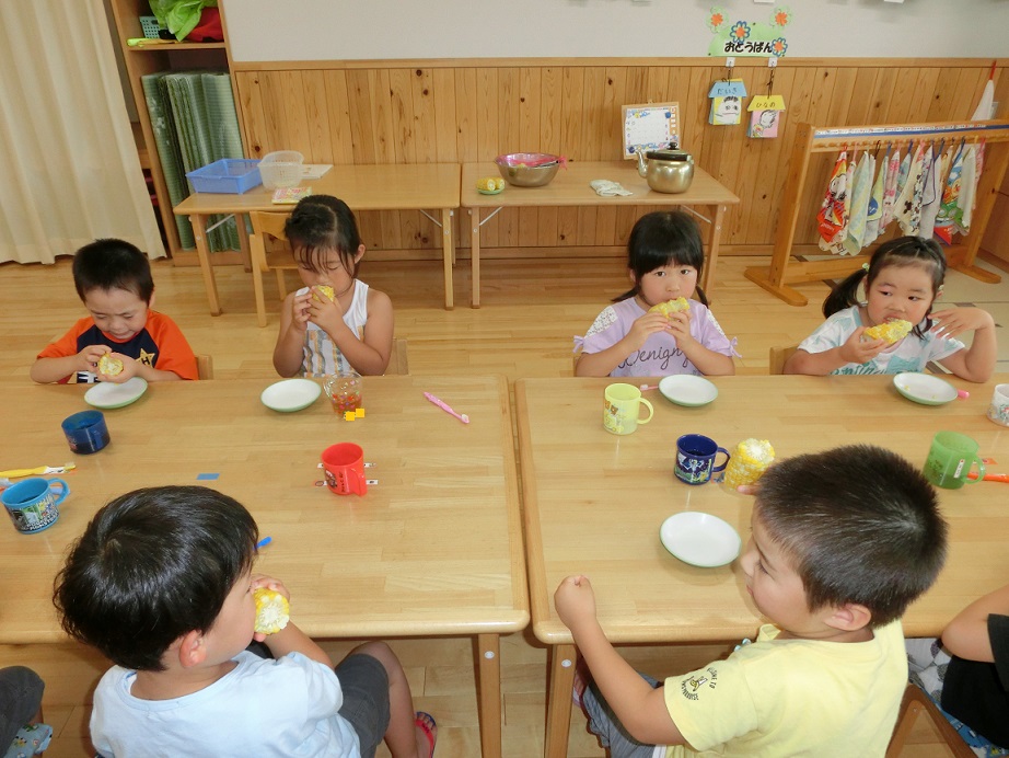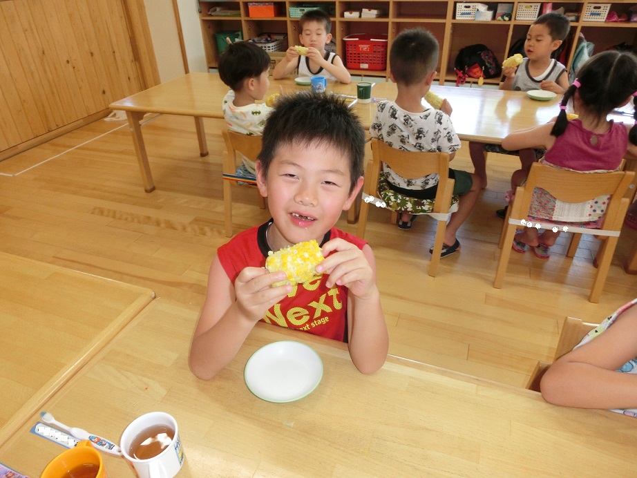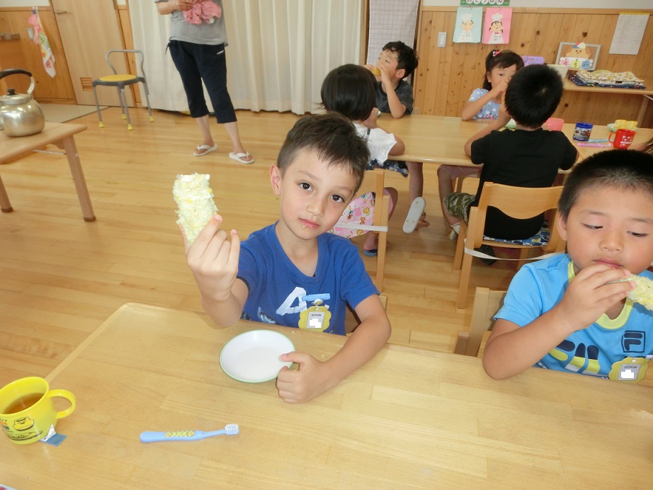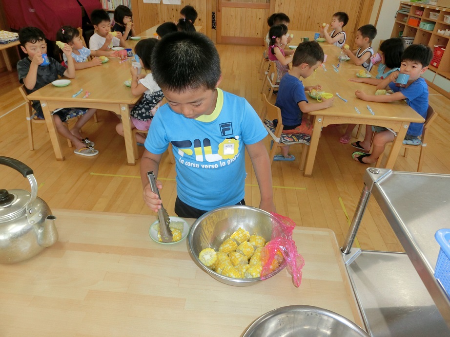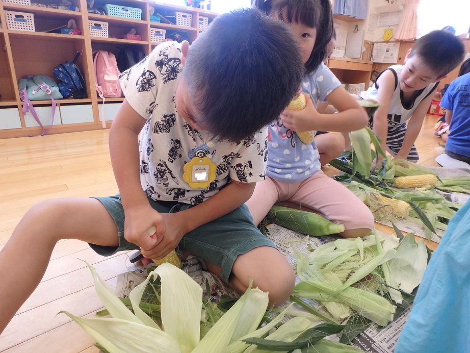 年中児「僕たちも今度おやつにトウモロコシが出る時にお手伝いできるかな?」