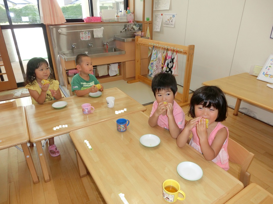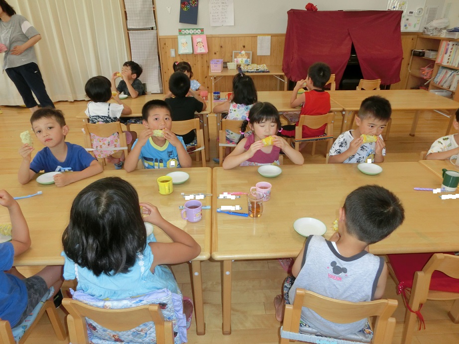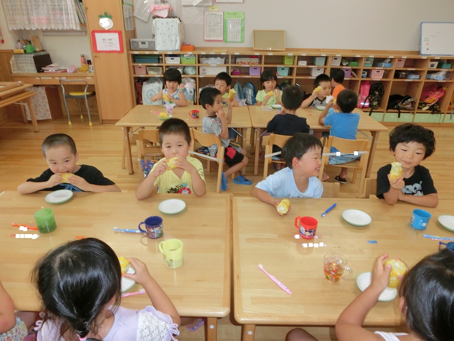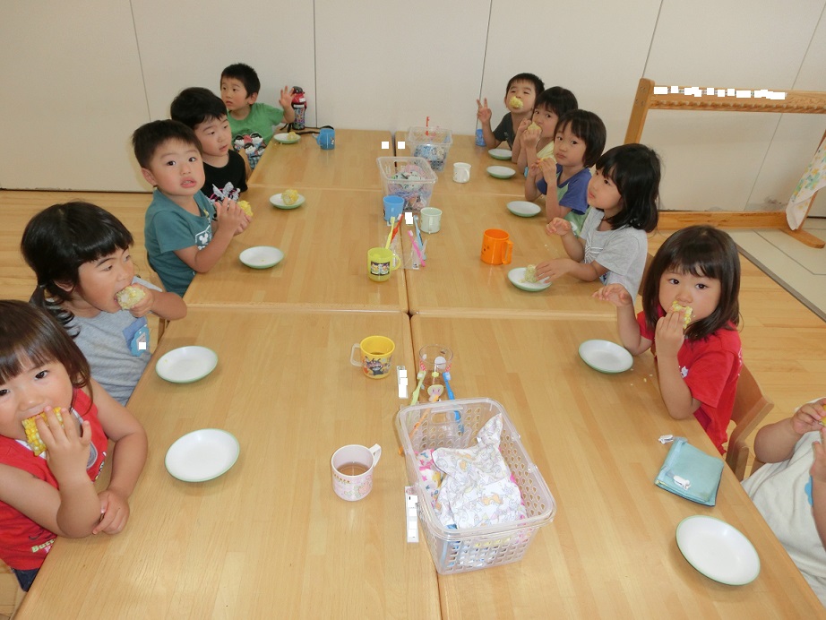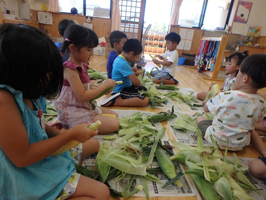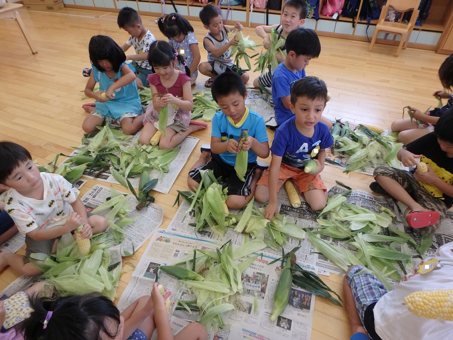 年中児「僕たちも今度おやつにトウモロコシが出る時にお手伝いできるかな?」