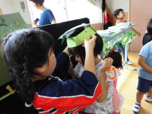 小さいお友だちは自分で作った「きゅうりチケット」を手に、年長さんが準備してくれたコーナーを回って楽しみました。