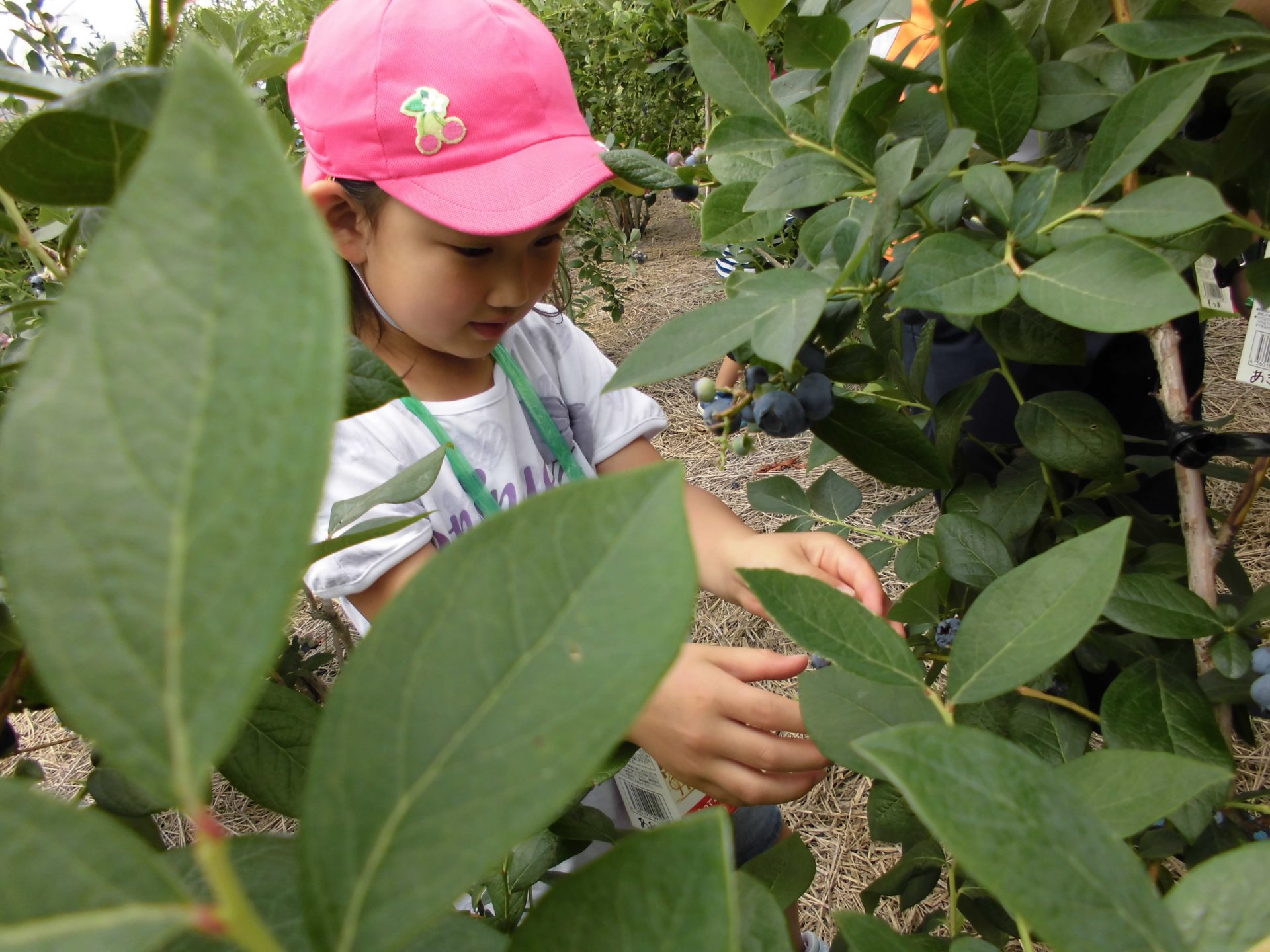と教えてもらい、葉っぱの陰に隠れていたブルーベリーを見つけられたときの子ども達の喜び!