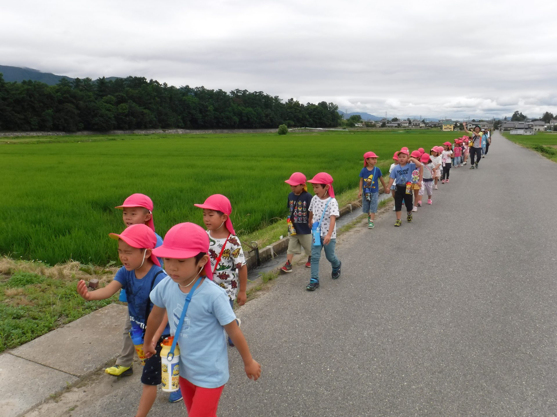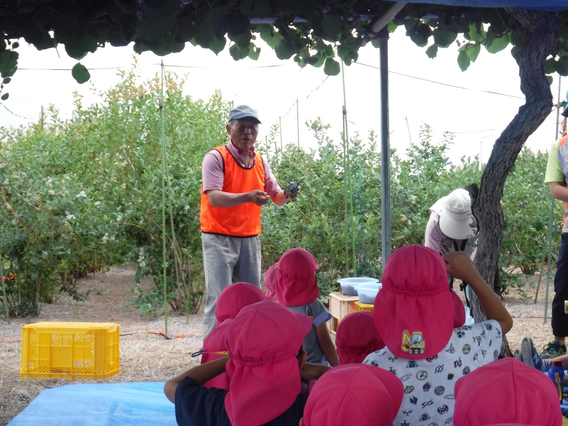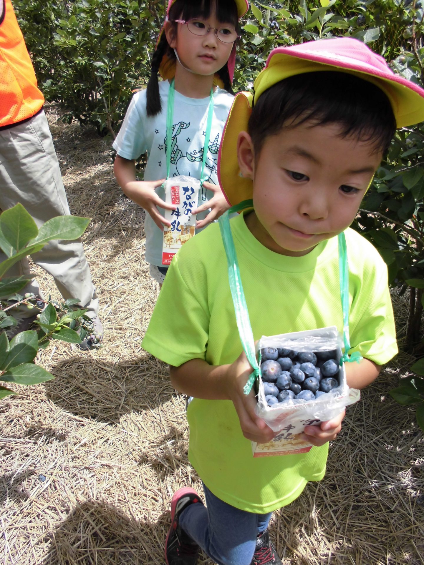 毎年、同じ地域にあるこども園のためにと、年長児を招いてくださり、牛乳パックいっぱいになるまでブルーベリーが採れること、また行きも帰りも一緒に歩いてくださり触れ合っていただけることに感謝の念がたえません。
