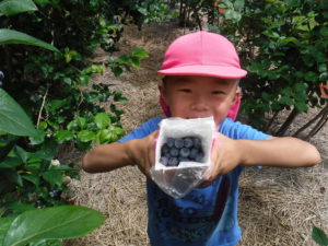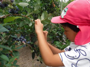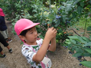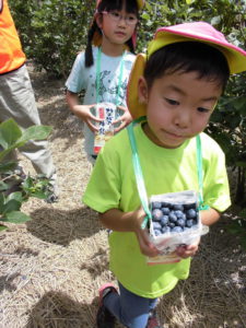 「大きいブルーベリーがたくさんある!」と初めてみる大きいブルーベリーに驚く子どもたち。