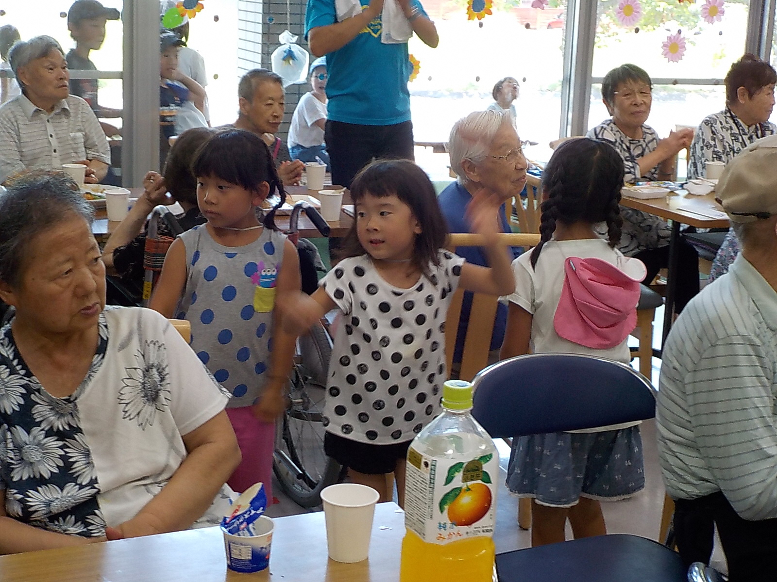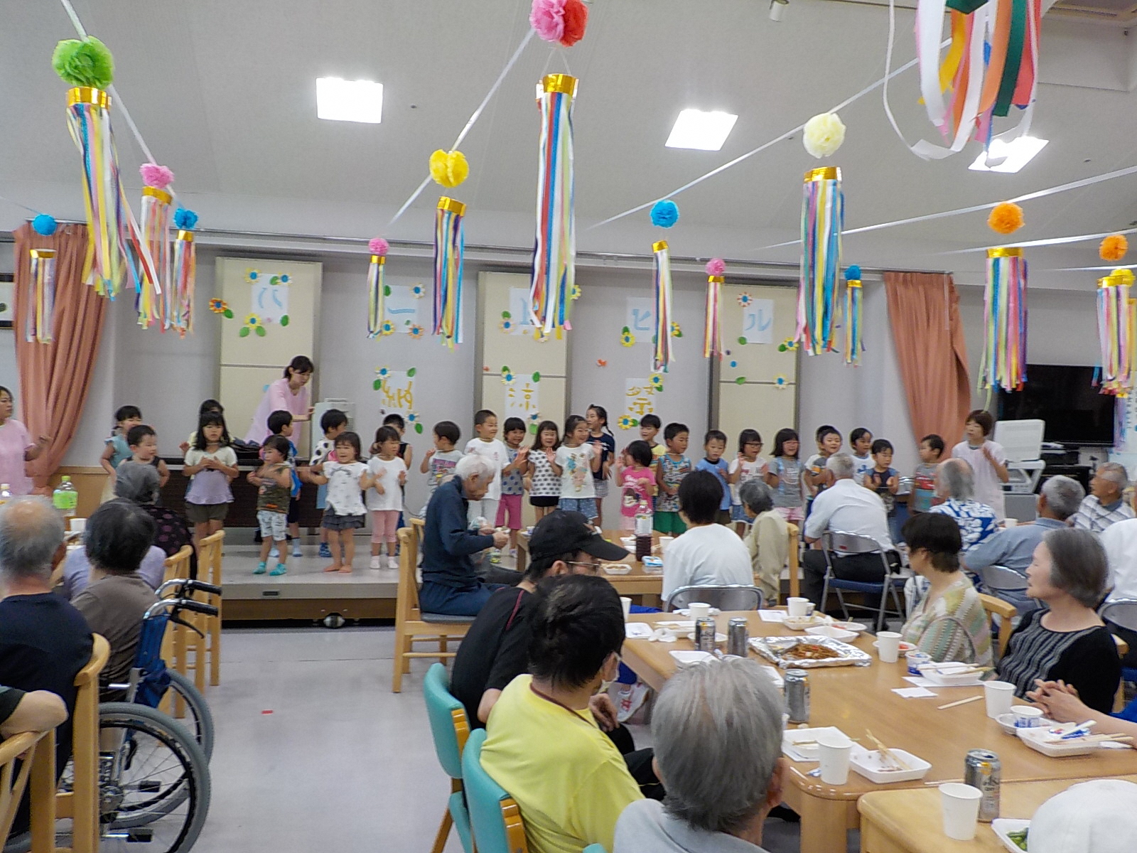 8月1日(木) 川路保育園のお隣の老人施設「ハートヒル川路」の納涼祭に招待していただき、全園児で、踊りを踊ってきました。